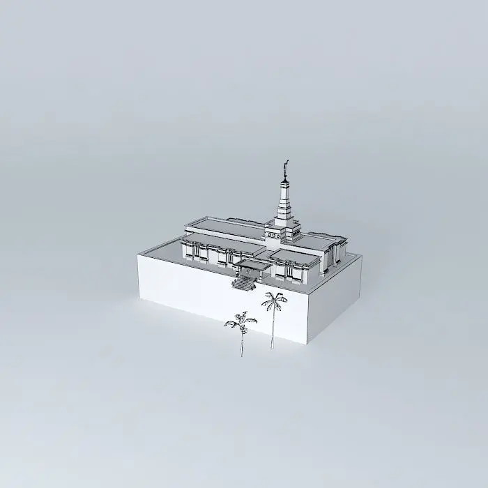 This 3D model was originally created with Sketchup 8 and then converted to all other 3D formats. Native format is .skp 3dsmax scene is 3ds Max 2016 version, rendered with Vray 3.00 Site: 2.96 acres (including adjacent meetinghouse). Exterior Finish: Banco Guardiano White marble from Torreon, Mexico. Temple Design: Classic modern, single-spire design. Number of rooms: Two ordinance rooms and two sealing. Total Floor Area: 10,700 square feet ANNOUNCEMENT; 8 JULY 1998 GROUNDBREAKING AND SITE DEDICATION; 28 NOVEMBER 1998 BY ERAN A. CALL PUBLIC OPEN HOUSE; 29 APRIL-6 MAY 2000 DEDICATION; 20 MAY 2000 BY THOMAS S. MONSON.
