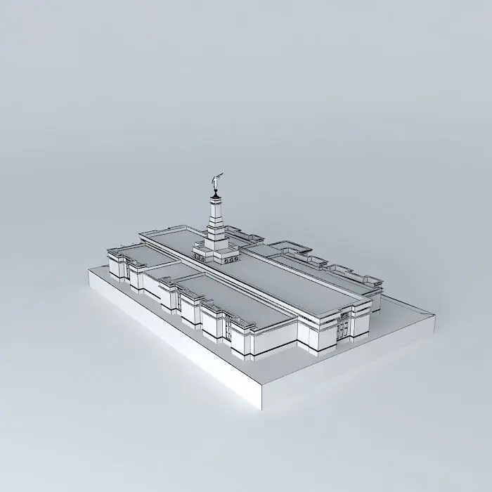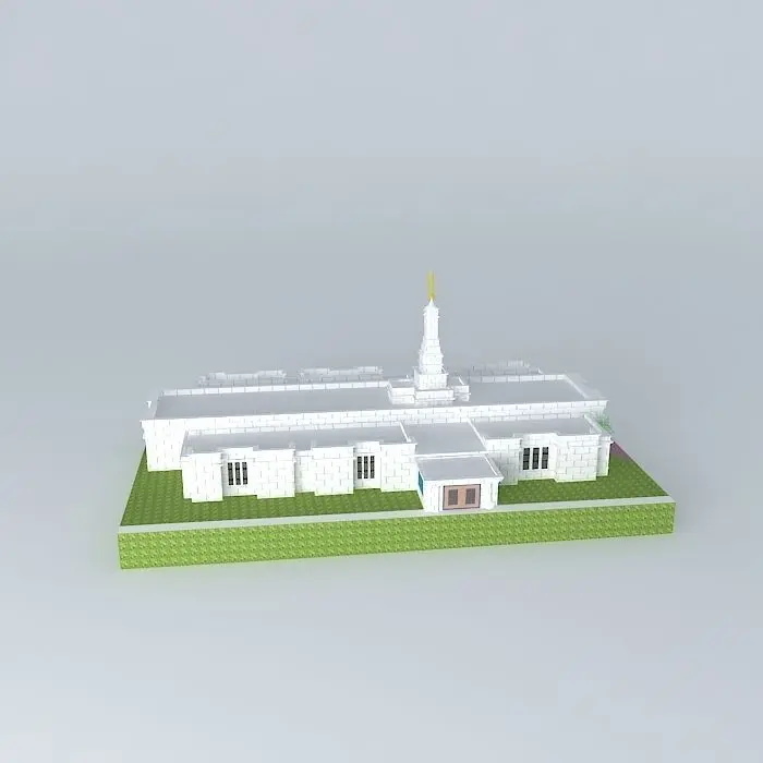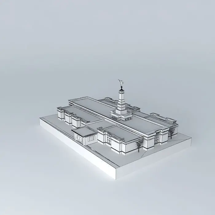 This 3D model was originally created with Sketchup 8 and then converted to all other 3D formats. Native format is .skp 3dsmax scene is 3ds Max 2016 version, rendered with Vray 3.00 Site: 5 acres. Exterior Finish: Bethel White granite. Temple Design: Classic modern, single-spire design. Number of Rooms: Two ordinance rooms and two sealing. Total Floor Area: 10,900 square feet.