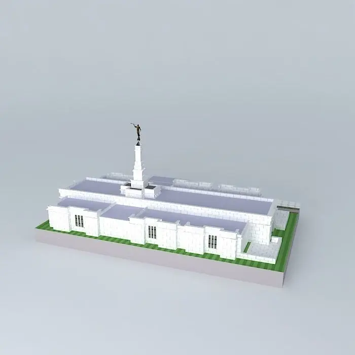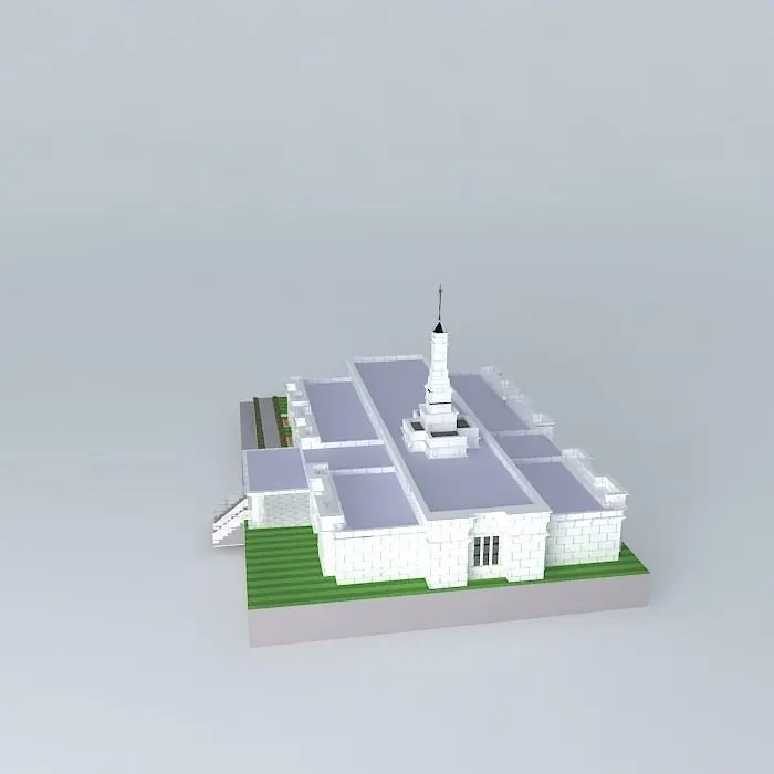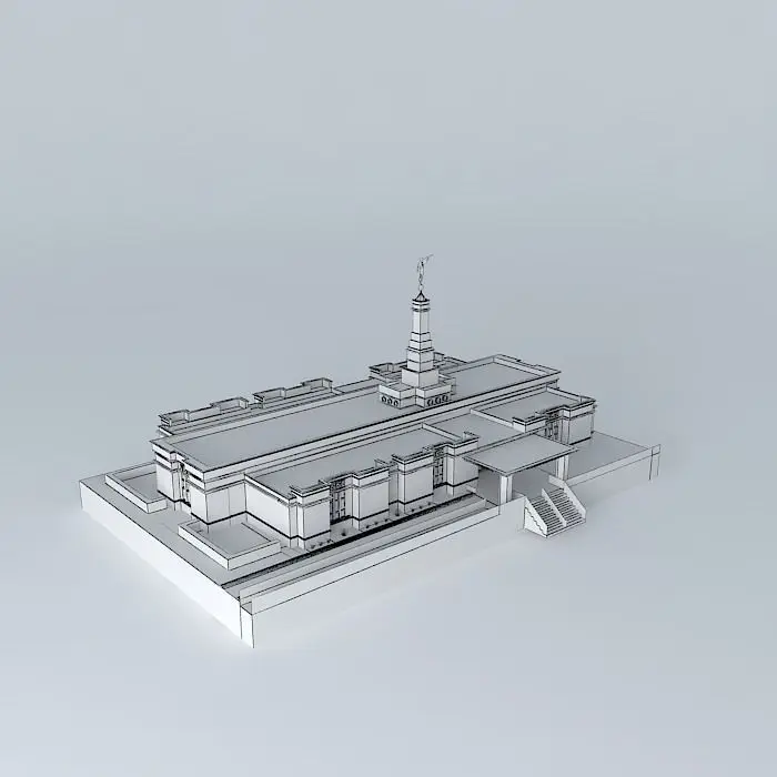 Exterior Finish: Light gray granite veneer. Temple Design: Classic modern, single-spire design. Number of Rooms: Two ordinance rooms and two sealing. Total Floor Area: 10,700 square feet.