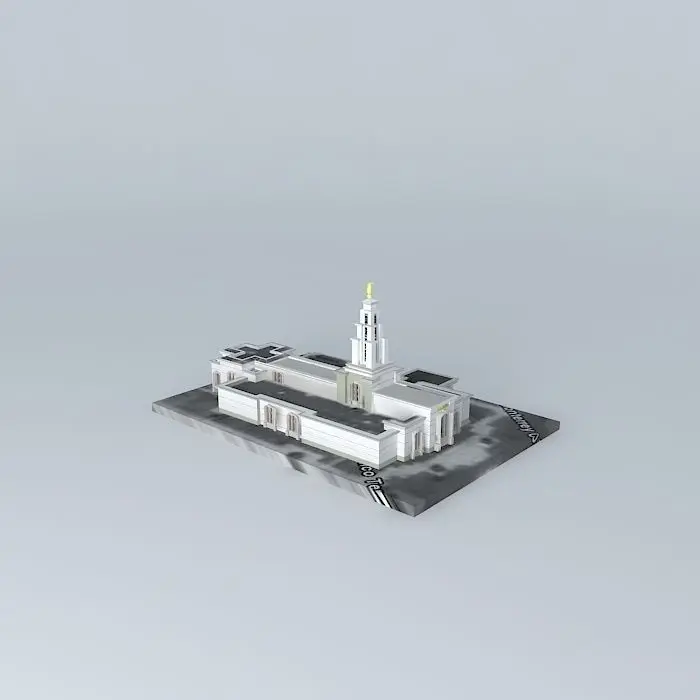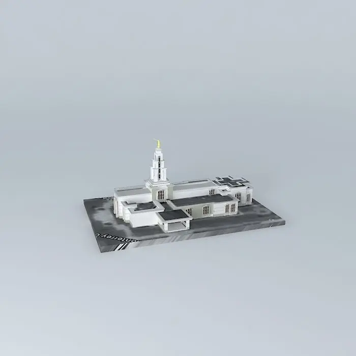 This 3D model was originally created with Sketchup 8 and then converted to all other 3D formats. Native format is .skp 3dsmax scene is 3ds Max 2016 version, rendered with Vray 3.00 Site: 31,466 square meters. Exterior Finish: White granite from Vermont. Temple Design: Classic modern, single-spire design. Number of Rooms: Two ordinance rooms and two sealing. Total Floor Area: 16,498 square feet.