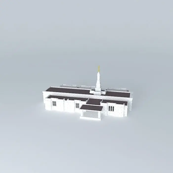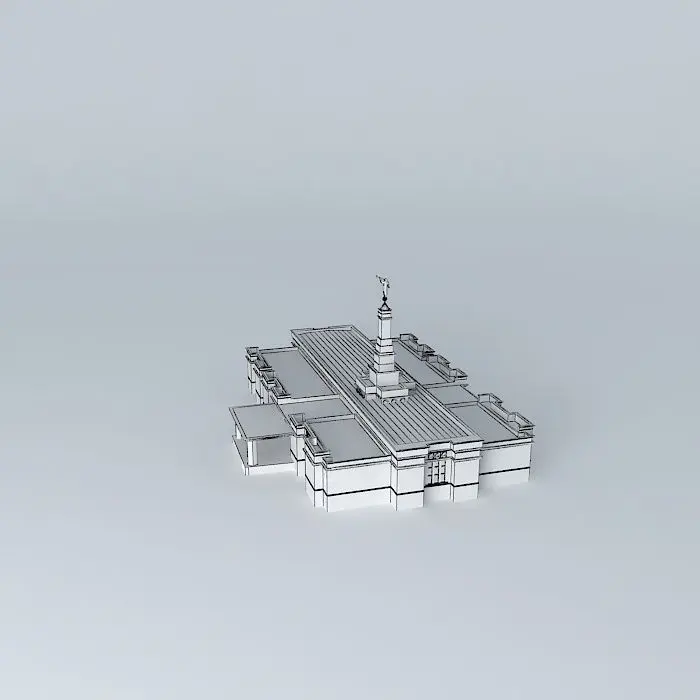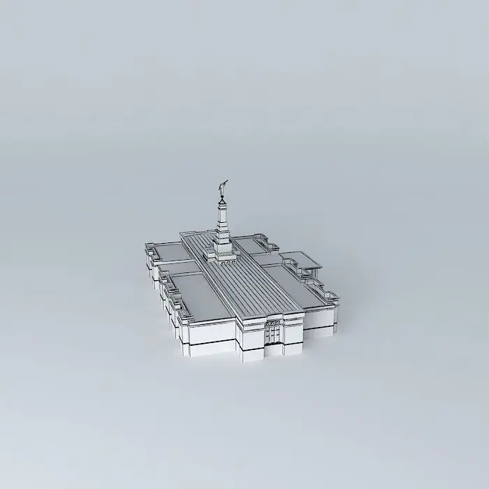 This 3D model was originally created with Sketchup 8 and then converted to all other 3D formats. Native format is .skp 3dsmax scene is 3ds Max 2016 version, rendered with Vray 3.00 Site: 2.4 acres. Exterior Finish: Bethel white granite from northern Vermont. Temple Design: Classic modern, single-spire design. Number of Rooms: Two ordinance rooms and two sealing. Total Floor Area: 10,700 square feet.