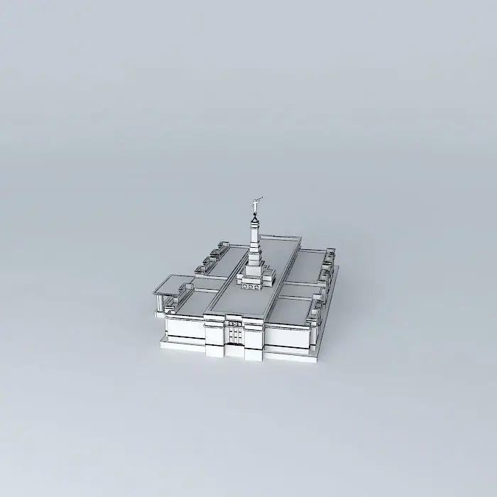 This 3D model was originally created with Sketchup 8 and then converted to all other 3D formats. Native format is .skp 3dsmax scene is 3ds Max 2016 version, rendered with Vray 3.00 Site: 1.87 acres (including adjacent meetinghouse). Exterior Finish: White marble from Torreón, Mexico. Temple Design: Classic modern, single-spire design. Number of Rooms: Two ordinance rooms and two sealing. Total Floor Area: 10,700 square feet.