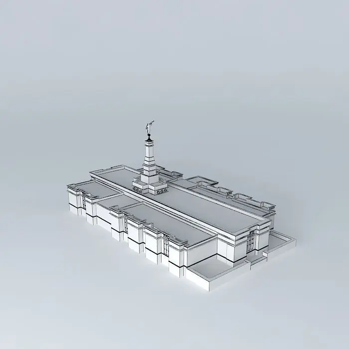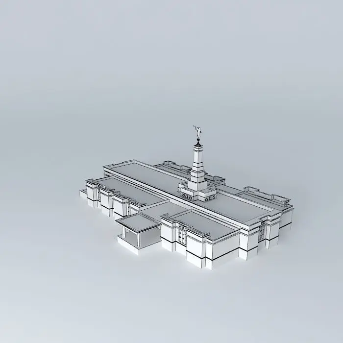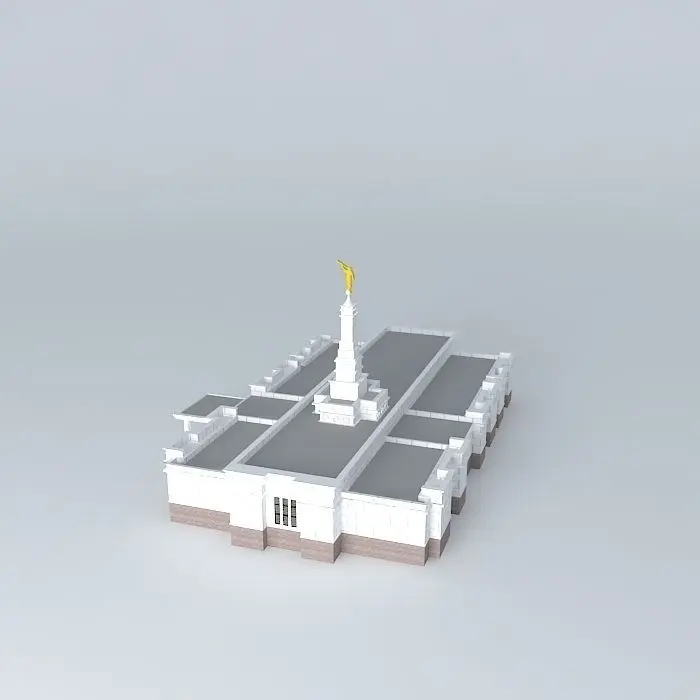 This 3D model was originally created with Sketchup 8 and then converted to all other 3D formats. Native format is .skp 3dsmax scene is 3ds Max 2016 version, rendered with Vray 3.00 Site: 2 acres. Exterior Finish: Gray granite quarried from Mount Airy, North Carolina. Temple Design: Classic modern, single-spire design. Number of Rooms: Two ordinance rooms and two sealing. Total Floor Area:10,700 square feet. ANNOUNCEMENT: 15 MARCH 1999 . PUBLIC OPEN HOUSE: 24-31 MARCH 2000 DEDICATION: 16 APRIL 2000 BY JAMES E. FAUST.