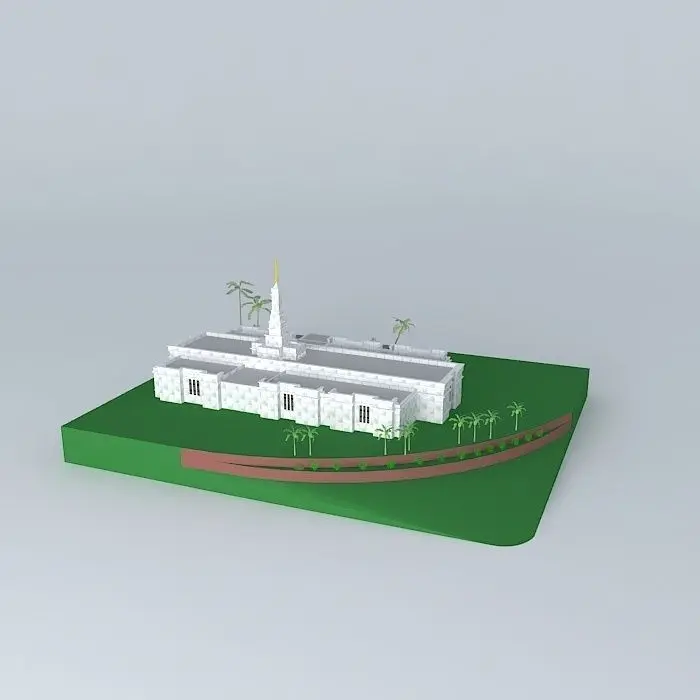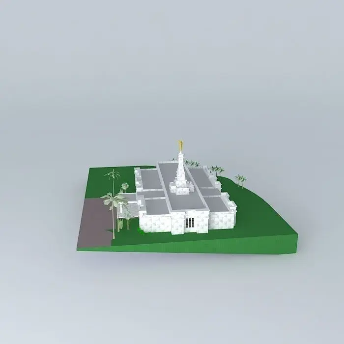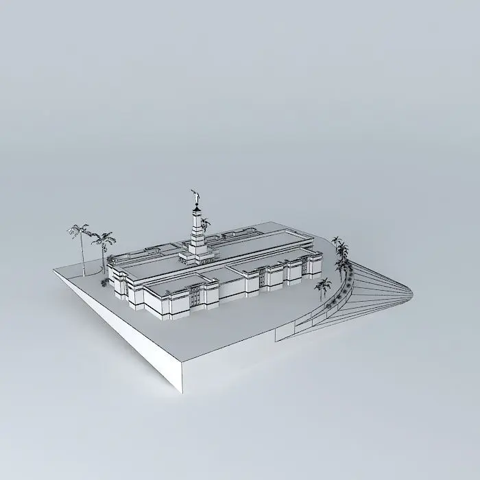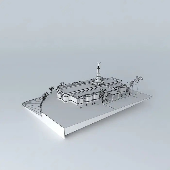 This 3D model was originally created with Sketchup 8 and then converted to all other 3D formats. Native format is .skp 3dsmax scene is 3ds Max 2016 version, rendered with Vray 3.00 Site: 2 acres. exterior Finish:Cotton white granite from ceara sate of Brazil. Temple Design: Classic modern, single-spire design. Number of Rooms:Twoordinance rooms and two sealing. Total Floor Area:10,700square feet. ANNOUNCEMENT: 30 SEPTEMBER 1997 DEDICATION: 17 DECEMBER 2000 BY GORDON B. HINCKLEY