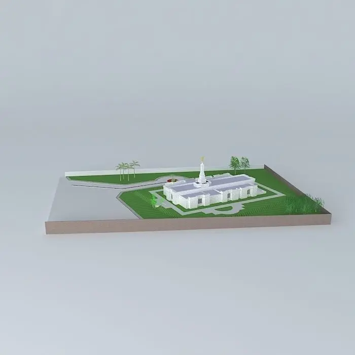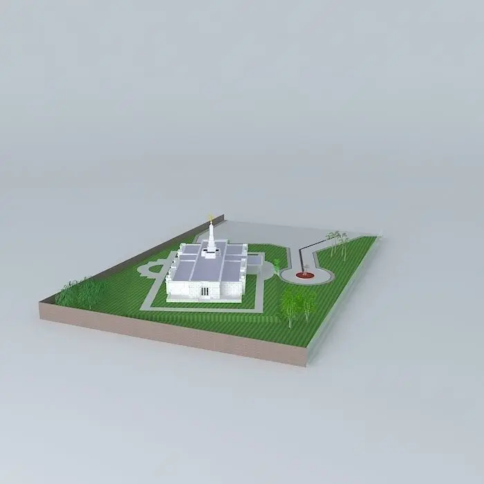 This 3D model was originally created with Sketchup 8 and then converted to all other 3D formats. Native format is .skp 3dsmax scene is 3ds Max 2016 version, rendered with Vray 3.00 Site: 2.96 acres (including adjacent meetinghouse). Exterior Finish: Blanco Guardiano white marble from Torreón, Mexico. Temple Design: Classic modern, single-spire design. Number of Rooms: Two ordinance rooms and two sealing. Total Floor Area: 10,700 square feet.