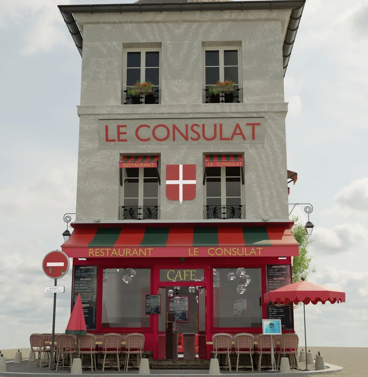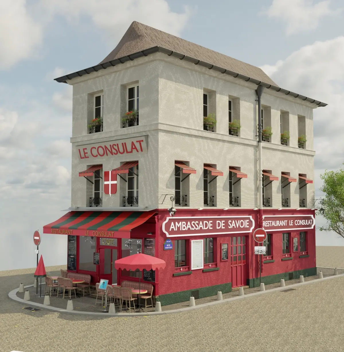 model info (dimensions)restaurant le consulat parislength :43.36 mwidth:13.6mheight:15.4 mcolors: Redwood & Dark green & materials:wood&metal &constantele consulat restaurant in Parishas full uv and unwraping."Le Consulat – A Parisian Icon in 3D Inspired by one of Paris’ most iconic cafés, this 3D model was created based on real architectural plans. With high-quality materials, detailed textures, and 11 export formats, it’s ready for use in architecture, game design, and animation. What do you think of this model? Which famous location should I create next?