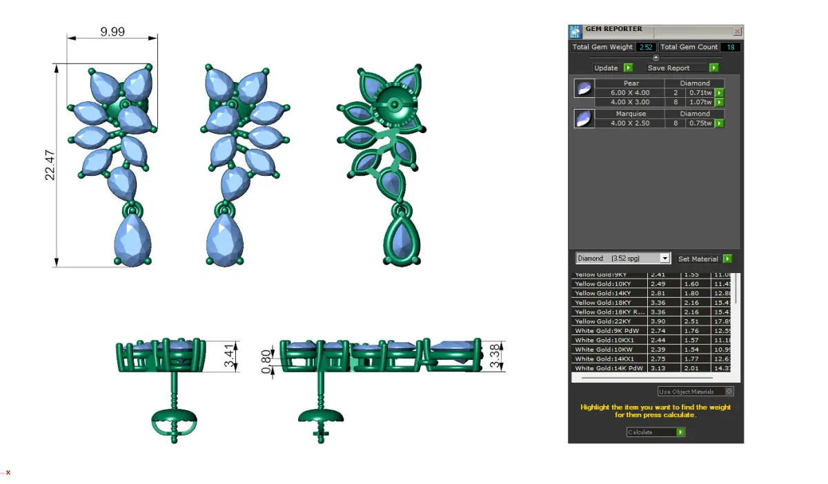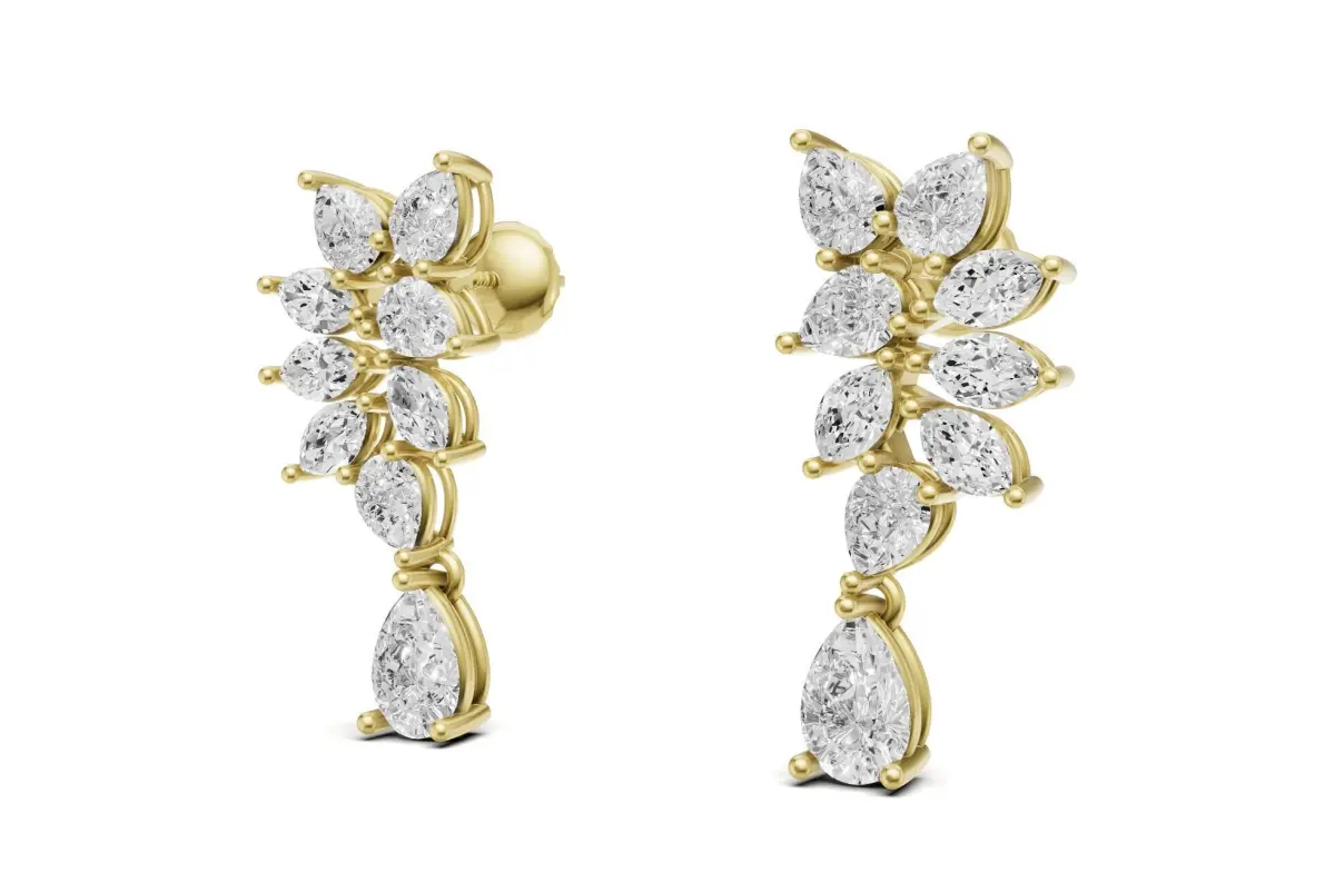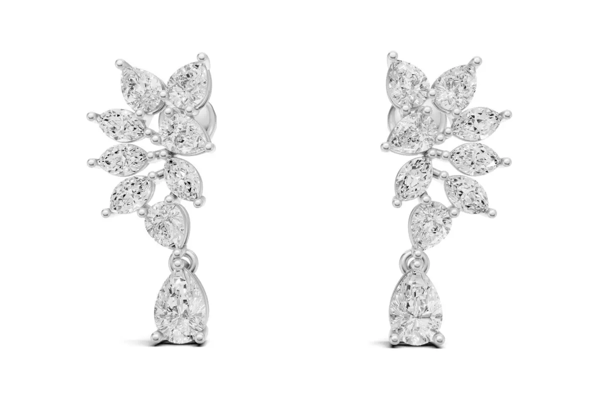 Leaf Design Diamond Earrings 3D Model 3D print model