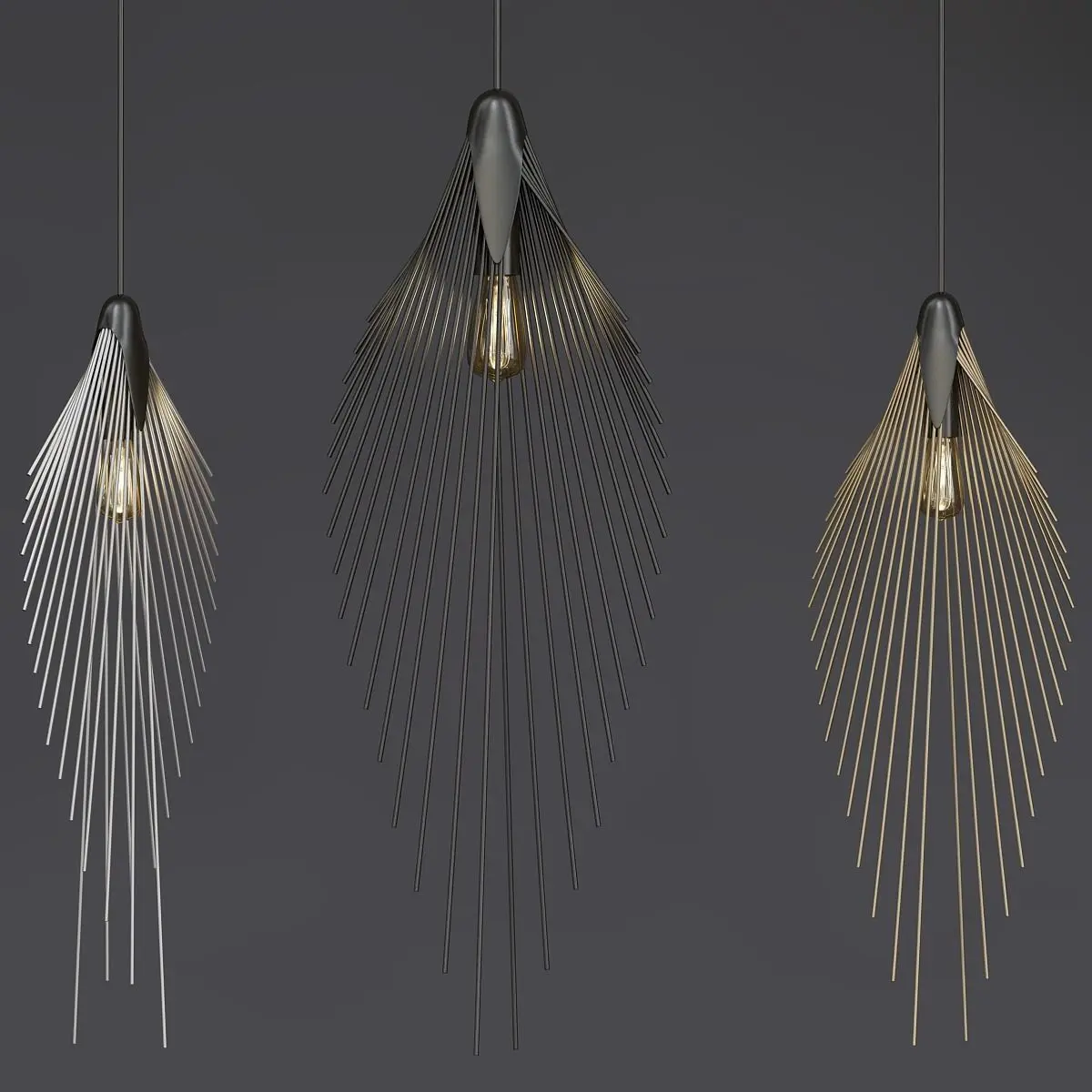 Name: Leaf_lampVersion: 2013Preview: YesUnits: MillimetersDimension: 1077.38 x 270.89 x 1838.82Polys: 34 347XForm: YesBox Trick: YesModel Parts: 30Render: V-RayFormats: 3Ds Max 2013, OBJ, FBX, 3DSMaterials:Aluminium: The shade of the pendant light is made of anodised, high quality aluminium tubes that provide a beautiful, glossy surface finish, yet allow the structure to remain lightweight.
