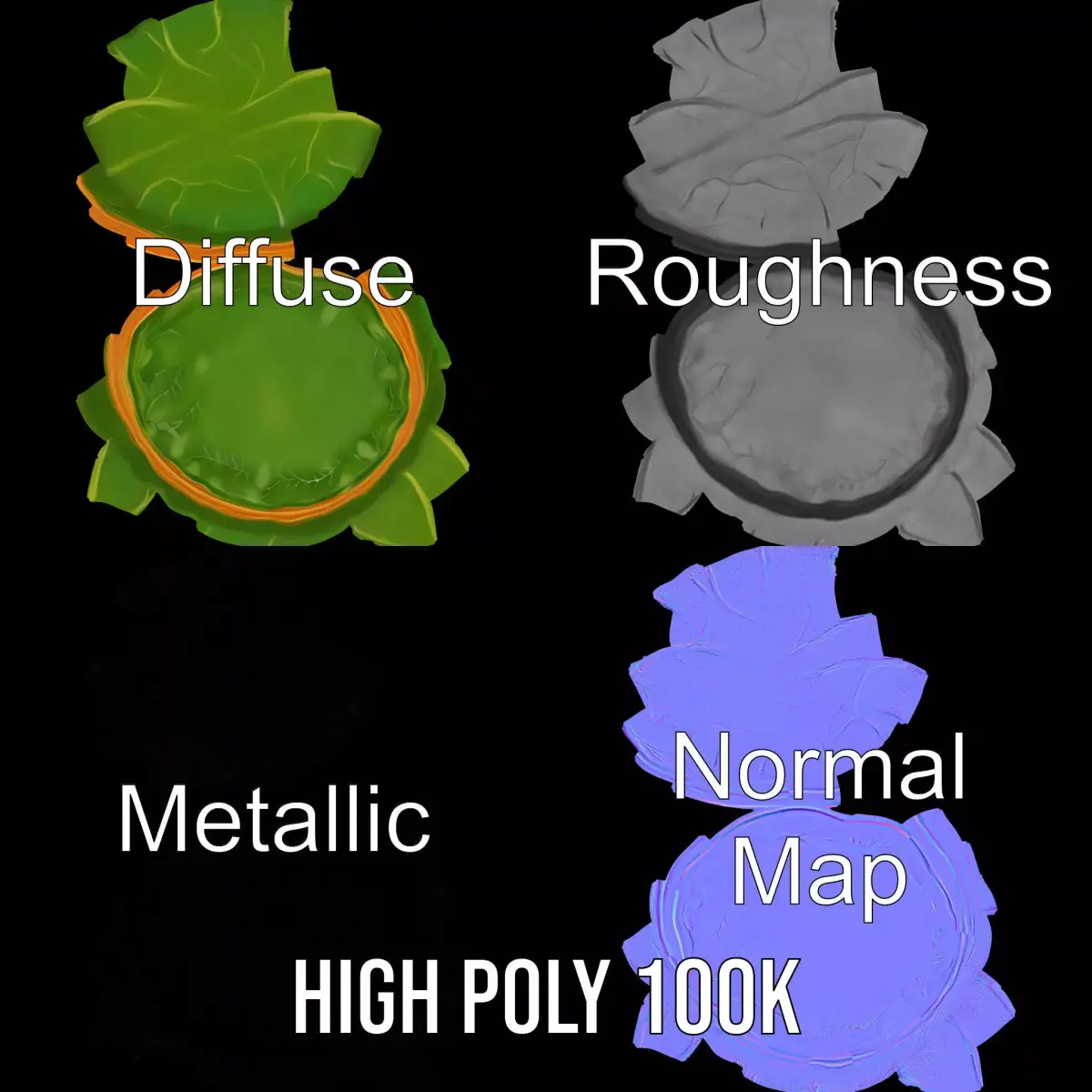 The Leafy Green Plate model pack features a beautifully designed ceramic plate with an elegant green leaf-like pattern. Perfect for showcasing dining scenes, kitchen simulations, or product displays in 3D environments. Each model has 3 levels of detail: low-poly(1000 triangles for mobile), middle-poly(10 000 triangles for the environment), and high-poly(100 000 triangles), which allows for the use of this model in production rendering(such as 3ds max, Maya, Cinema4d, Blender, Vray/Corona/Cycles and all others), game engines(Unity and Unreal compatible), and interactive presentations, providing a choice of detail based on the LOD System principle. The model's textures are PBR, Diffuse, NormalMap, and reflection/roughness/metallic, suitable for any modern rendering engine. All models accurately unwrapped and have no overlapping UV. All textures are 4096*4096 in size. If you like the model, please leave a comment or like!