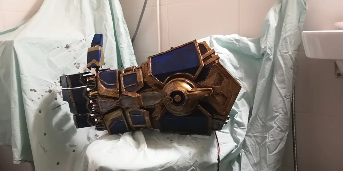 Atlas gauntlet from League of Legends / Arcane from what Vi uses. In the video and how I've done it is with 14 servos for every joint and motorized with a potentiometer inside. This project can though be printed and used as a prop without motorizing it. In the files is included the code for Arduino Uno to run the led strip and 14 servos via PCA 9865 board.