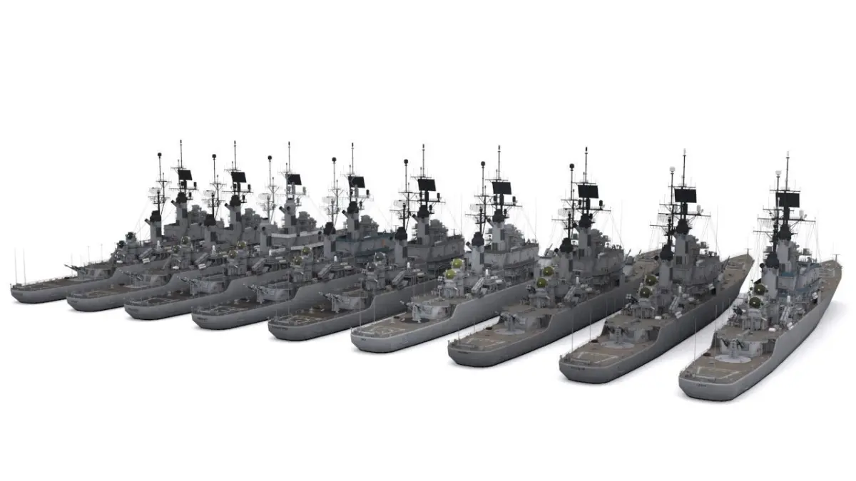 9 ship models. obj. fbx. 3ds. max 12. Modern US Navy Guided Missile Cruisers perform primarily in a Battle Force role. These ships are multi-mission (AAW, ASW, ASUW) surface combatants capable of supporting carrier or battleship battle groups, amphibious forces, or of operating independently and as flagships of surface action groups. Due to their extensive combat capability, these ships have been designated as Battle Force Capable (BFC) units.The Leahy-class were double-end guided missile Guided Missile Destroyer Leader [DLG], which as with other similar ships were reclassified as Guide Missile Cruisers [CG] on 30 June 1975. The class was given an AAW upgrade during the late-1960's and early 1970's, with Terrier launchers modified to fire Terrier or Standard SM-1ER missiles. The 3"/50 guns were replaced by 8 Harpoon missiles, the Terrier launchers were upgraded to fire the Standard SM-2ER missile, and 2 Phalanx CIWS were added. All were upgraded under the late-1980's New Threat Upgrade (NTU) program, which included combat system capability improvements to the ship's Air Search Radars (SPS-48E and SPS-49), Fire Control Radars (SPG-55B), and Combat Direction System (CDS). These improvements provided an accurate means of coordinating the engagment of multiple air targets with SM-2 Extended Range missiles. During the NTU overhaul, all spaces were renovated, berthing and food service areas were refurbished, and the engineering plant was fully overhauled.CG 16 USS Leahy1962Bath Iron Works, Bath, MaineCG 17 USS Harry E. Yarnell1963Bath Iron Works, Bath, MaineCG 18 USS Worden1963Bath Iron Works, Bath, MaineCG 19 USS Dale1963New York Shipbuilding Co., Camden, New JerseyCG 20 USS Richmond K. Turner1964New York Shipbuilding Co., Camden, New JerseyCG 21 USS Gridley1963Puget Sound Bridge & Drydock, Seattle, WashingtonCG 22 USS England1963Todd Shipyards Corp., Seattle, WashingtonCG 23 USS Halsey1963San Francisco Naval Shipyard, San Francisco, CaliforniaCG 24 USS Reeves1964Puget Sound Naval Shipyard, Bremerton, Washington