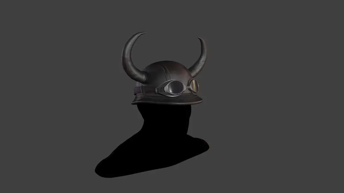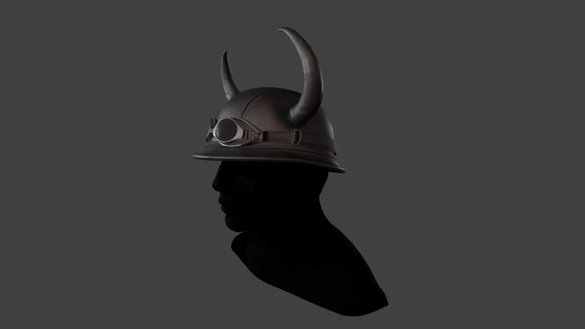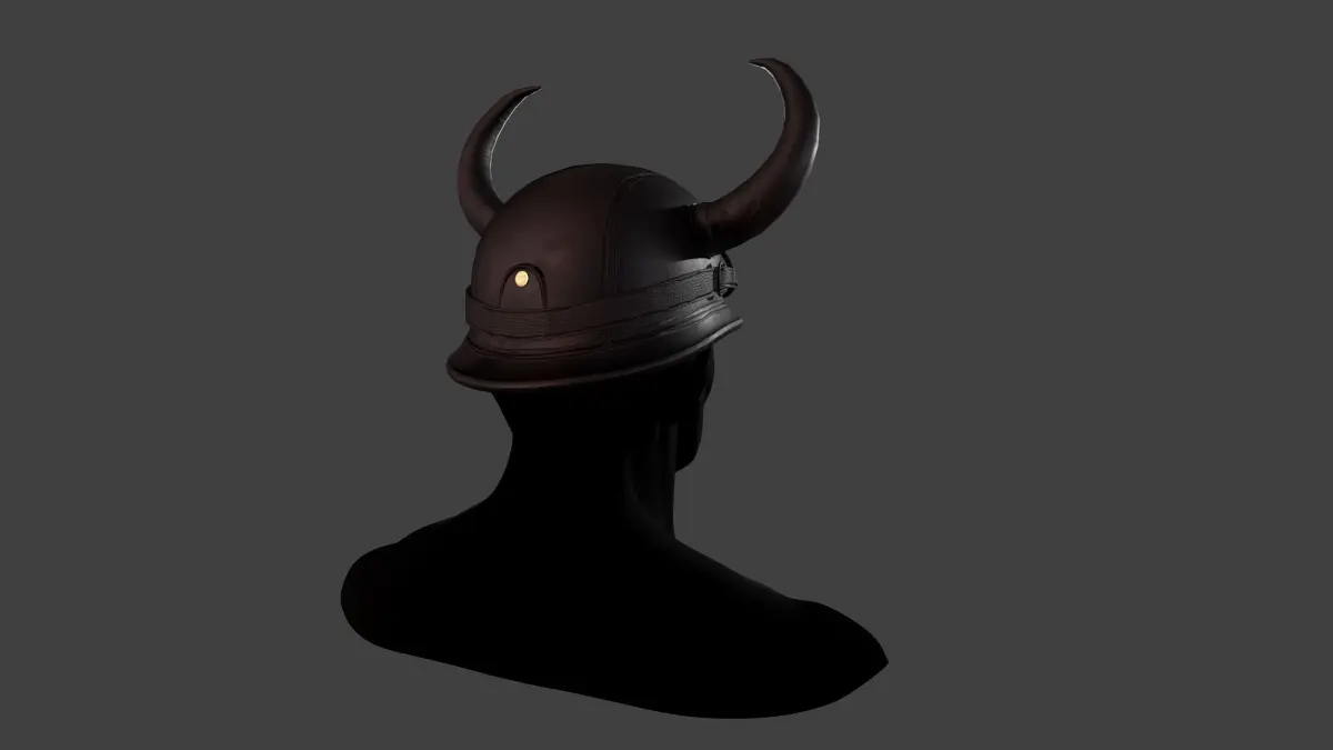 Leather biker helmet with horns Low-poly game ready High quality optimized model, Model is completely textured with all materials applied No clean up necessary, No special plugin needed to open scene. Model does not include any backgrounds or scenes used in preview images. The model was modeled in Maya, made UV Mapping, Retopo and creating texture.