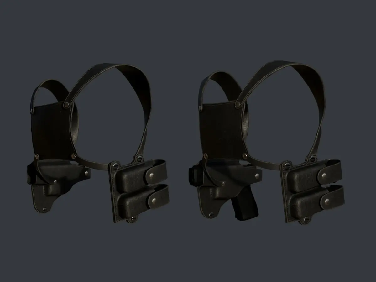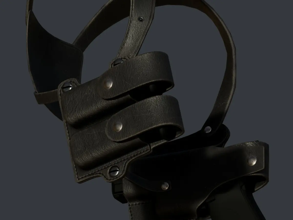 This is a game ready, low poly model based on vintage Leather Holsters. Ready for rigging on a character- or used as prop.