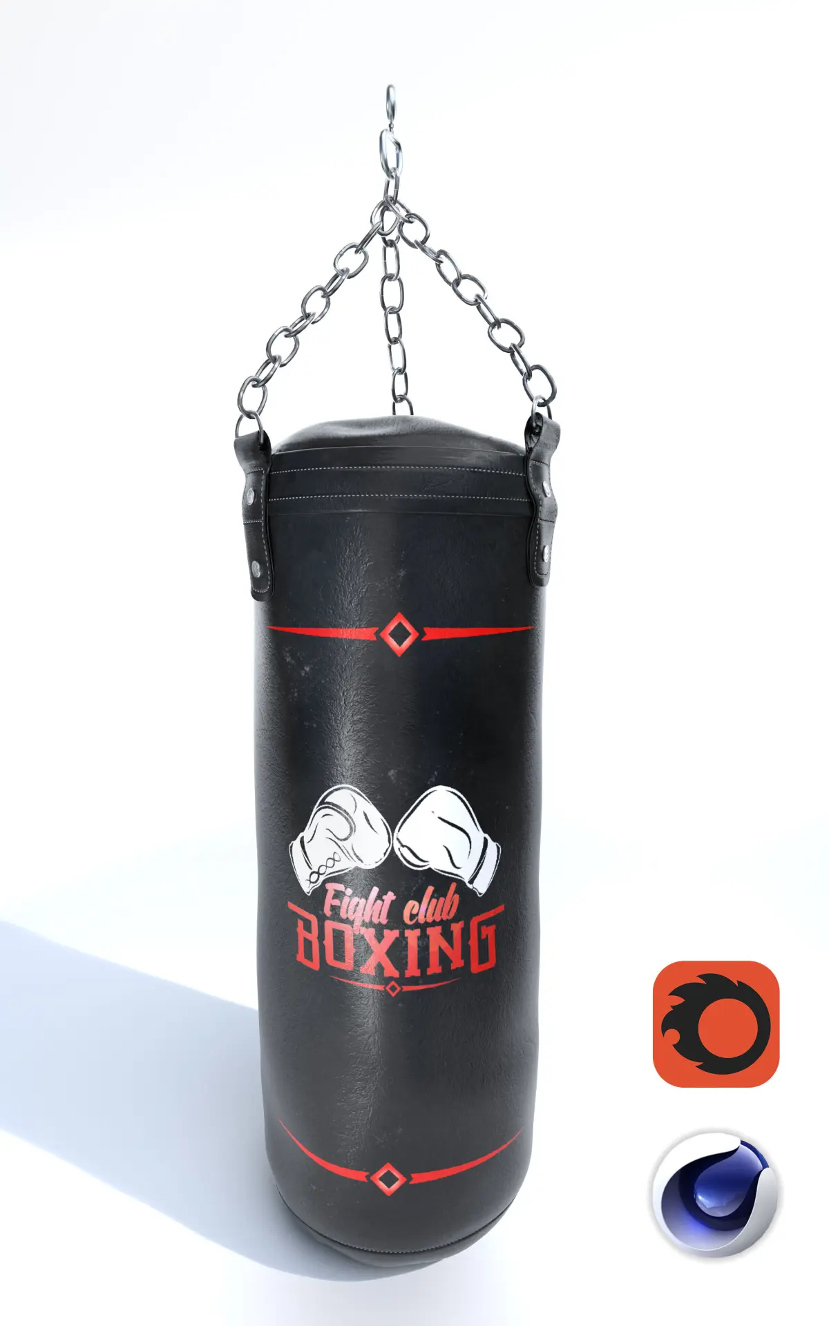 For sale is a model with a unique coloring and design that you can use in your projects. The model is well optimized (lighting installation, materials and textures included, just click render). Punching bag are made in a standard style, consisting of leather and metal textures.