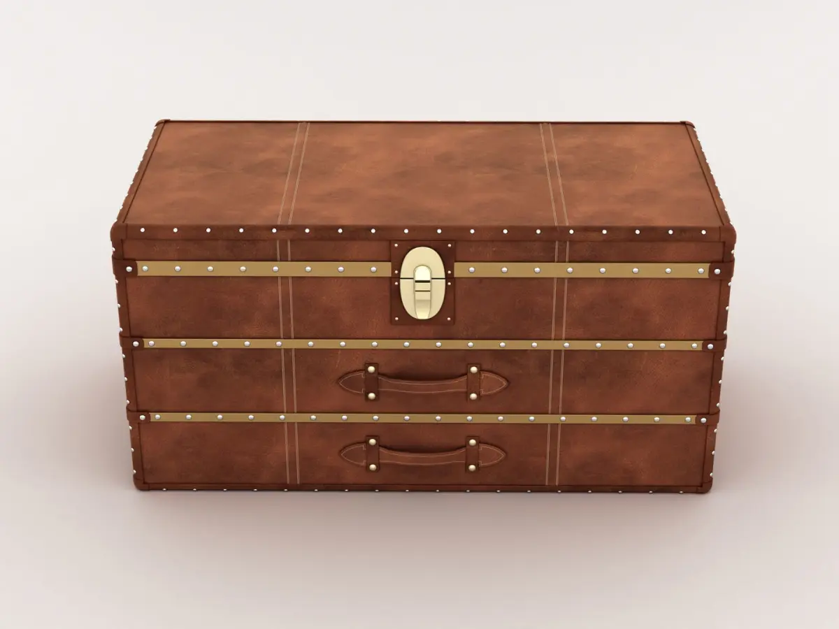 A DETAILED 3D MODEL OF A LEATHER STORAGE CHEST: