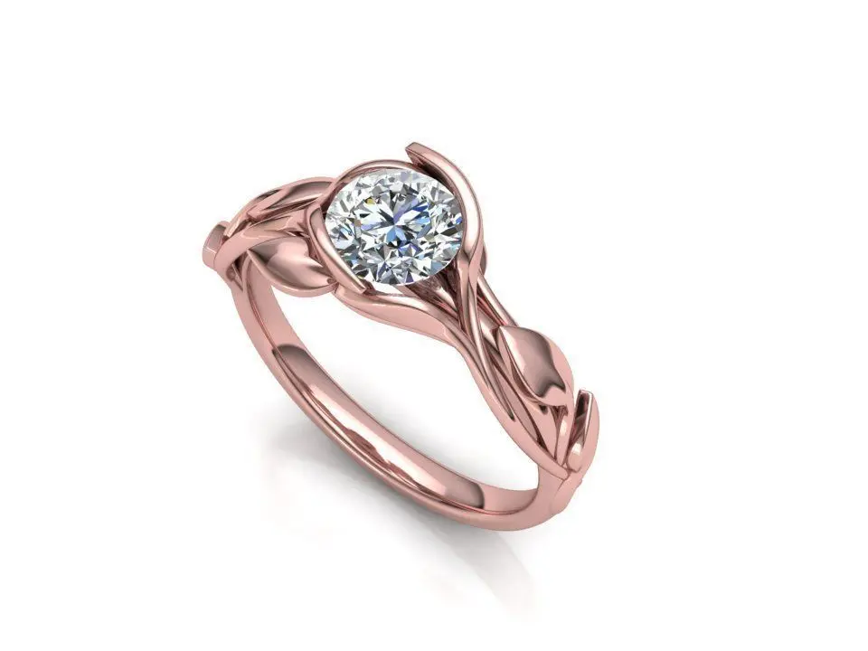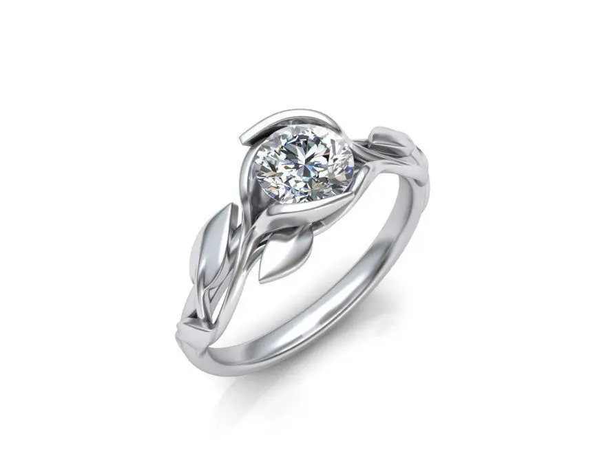 Leaves 6mm stone Engagement ring Printable 3d model 3D print model