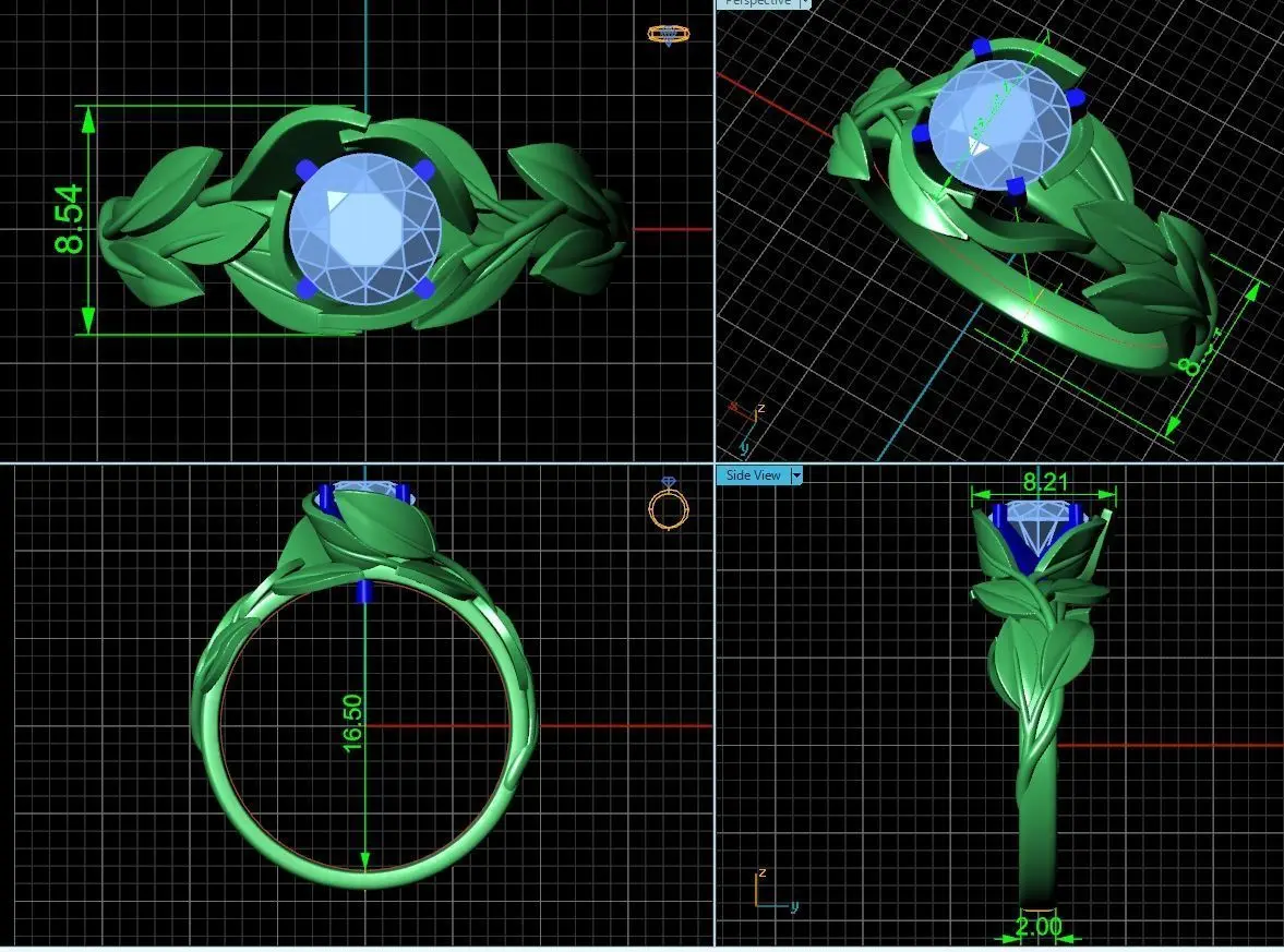 jewelry 3D modeling, creative design, cam cad, rapid prototiping, rendering, animation original classic evening ring stylish trendy elegant graceful diamond gold
