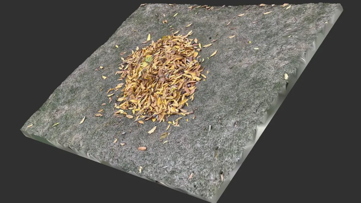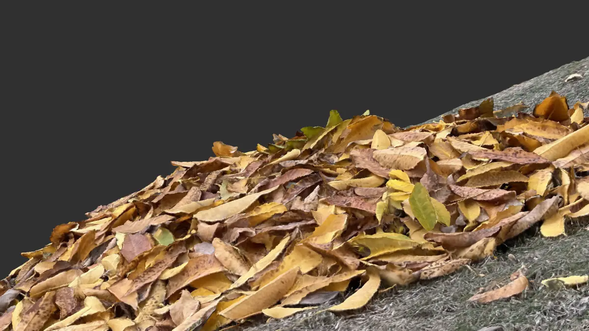 - A pile of leaves on the ground. 3d scanning of leaves.