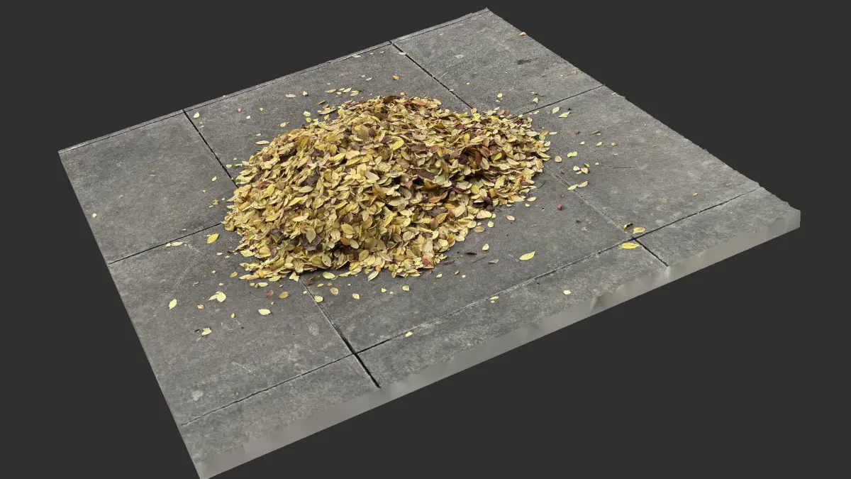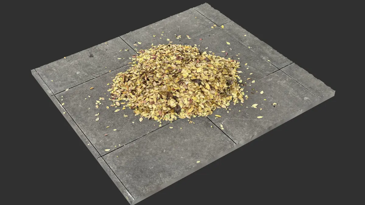 - A pile of leaves on the ground. 3d scanning of leaves.
