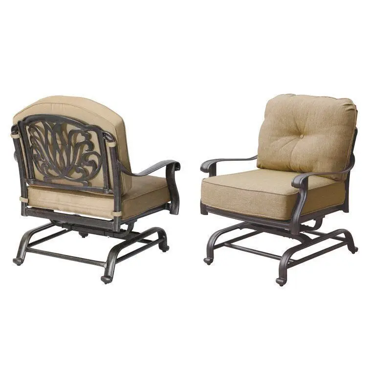 - You have your favorite chair in the living room: But how about on the deck? This club chair is bound to make a bid for your attention. Founded atop a weather-resistant cast aluminum base that's finished in an antique bronze hue, it's topped off with two plush polyester and foam cushions for an inviting look.