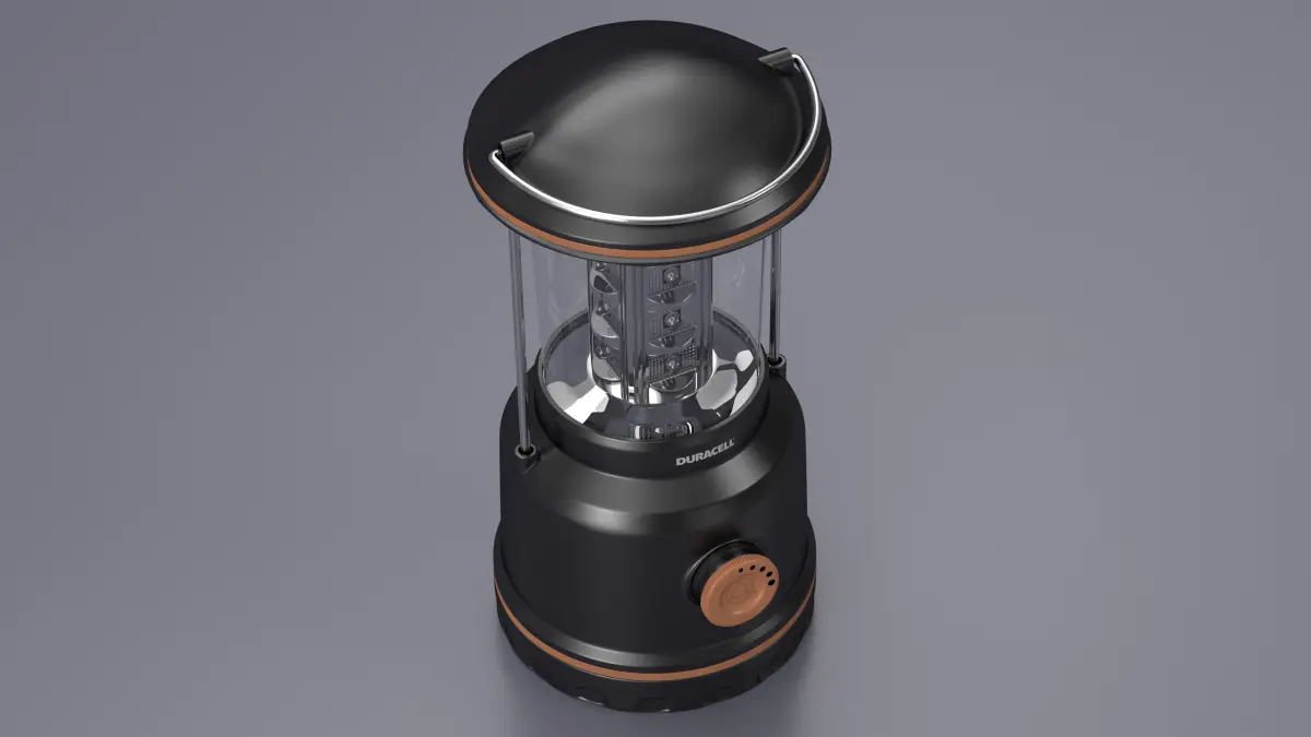 LED Camping Lamp Duracell LNT-100 is a 3d model of light source designed to provide comfortable lighting inside of tents, outdoors and in campsites.