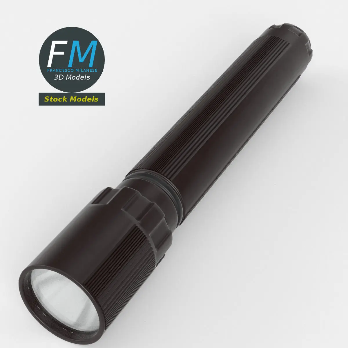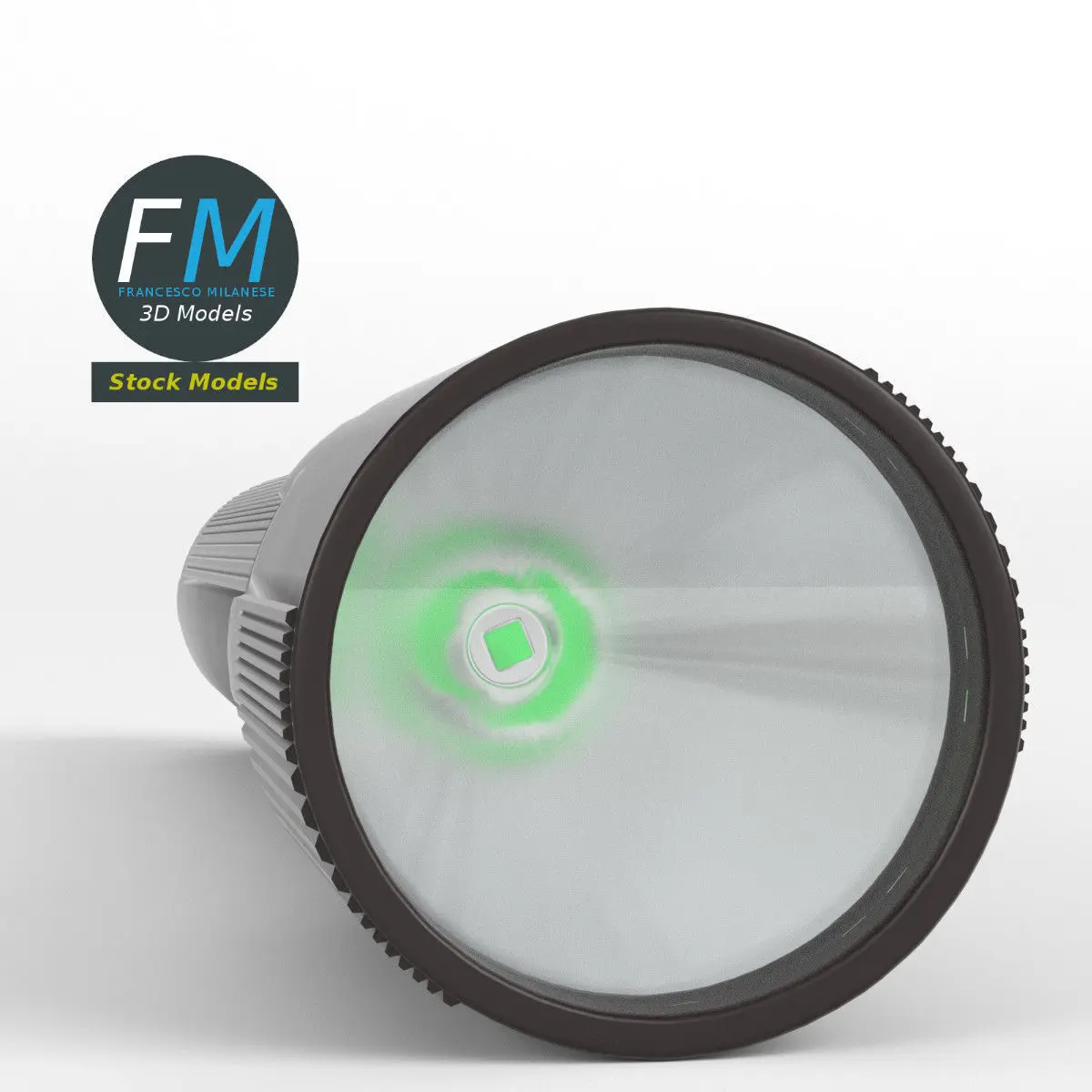 LED flashlight 3D Model. 2 individual objects (base, glass), each one with its own non overlapping UV Layout map, Material and PBR Textures set. Production-ready 3D Model, with PBR materials, textures, non overlapping UV Layout map provided in the package.