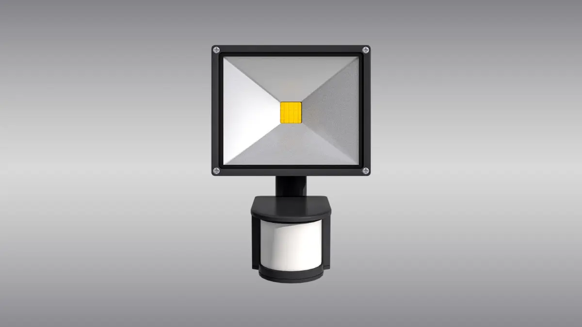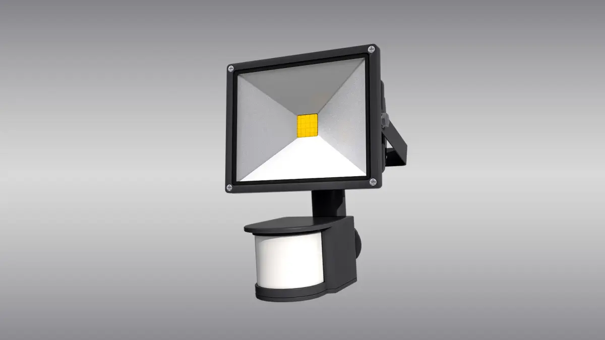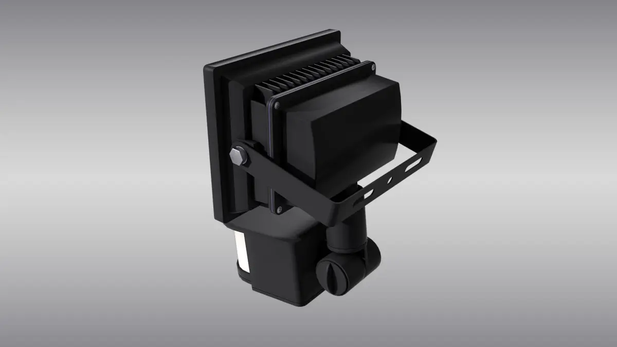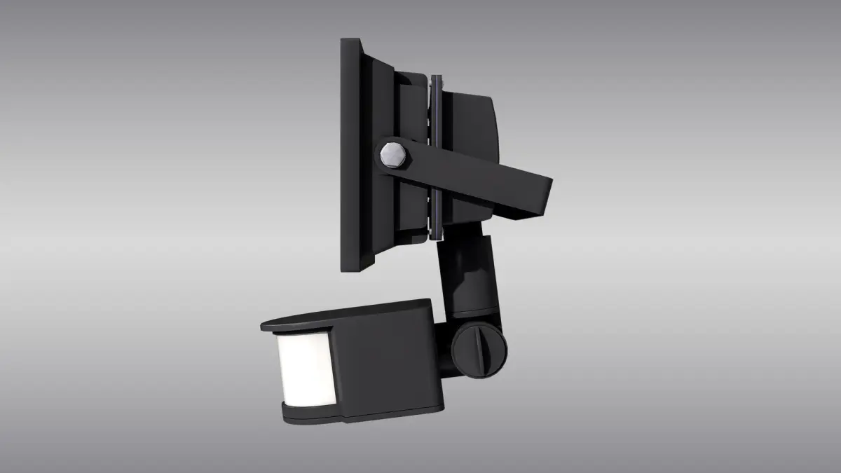 Detailed 3D model of an LED floodlight with motion sensor, modeled and rendered in Cinema 4D. The model was created using approximate real world dimensions.