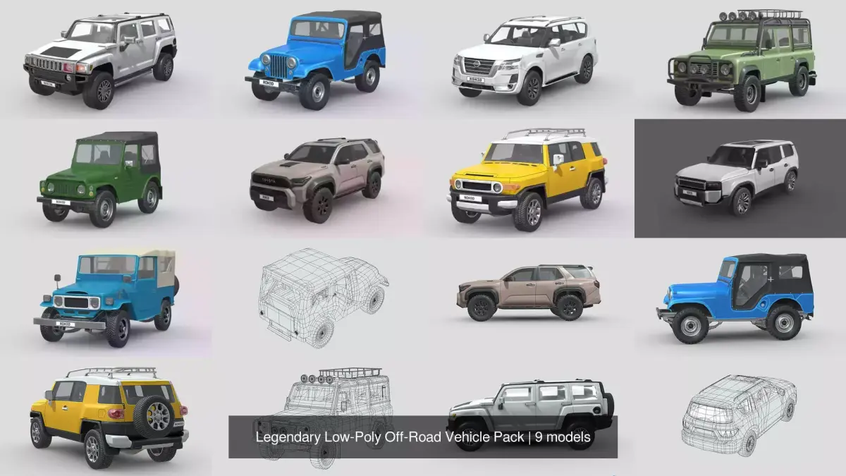 This collection features a curated set of low-poly 3D vehicle models designed for maximum performance without sacrificing visual quality.