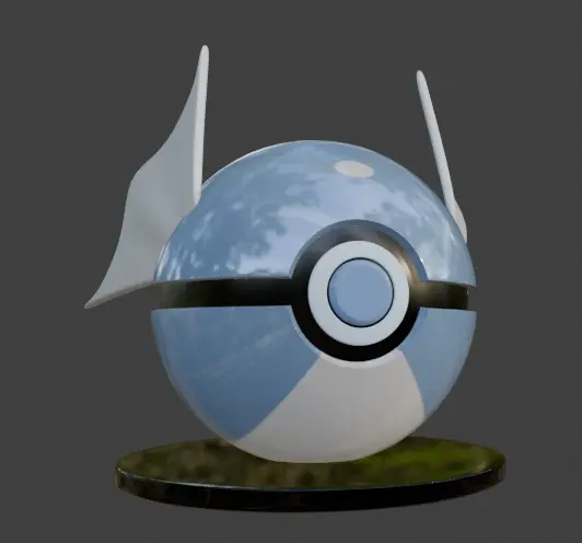 A high-quality, stylized 3D model of a special variant of the Poké Ball, most resembling the Dream Ball (Ensueño Ball) used for catching Pokémon in the Dream World. The design is sleek, modern, and highly polished, giving it the appearance of a luxury collectible or a prop from a high-budget animated film.