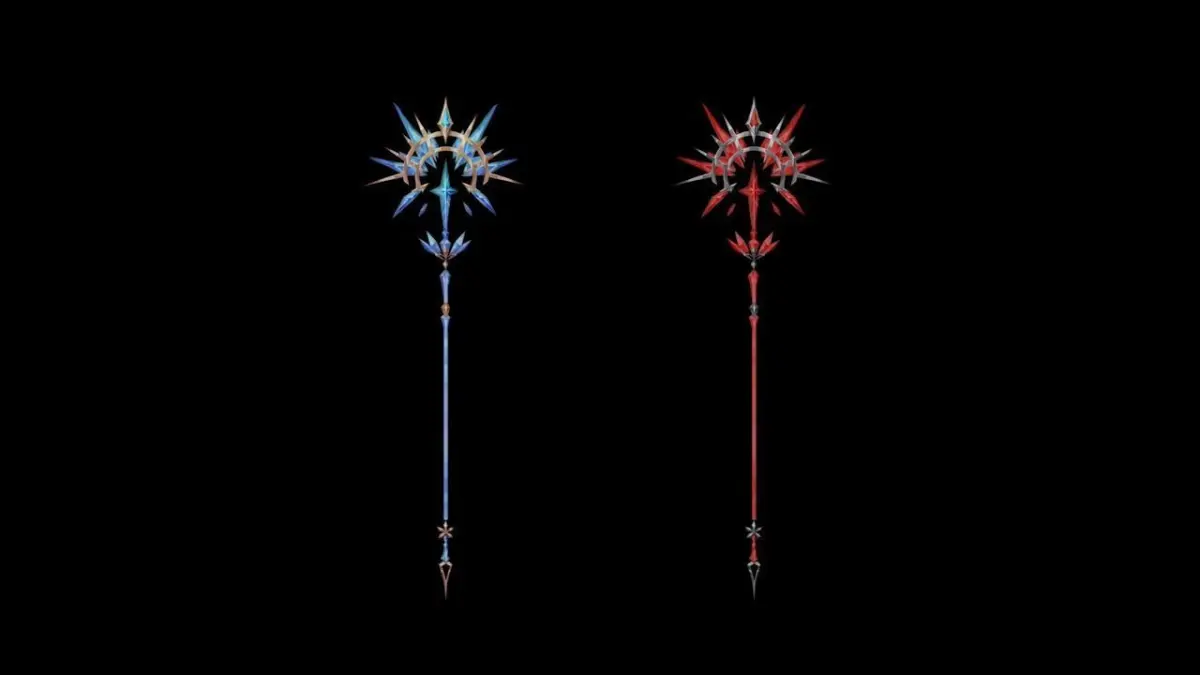 A magic scepter in a legendary/crystal style that comes with one variant.
