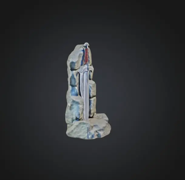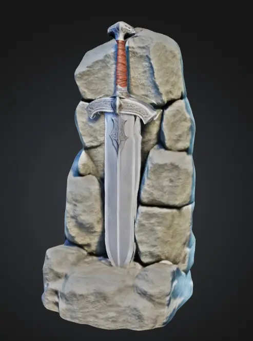 A highly detailed 3D model of a legendary sword embedded in a stone, inspired by the mythical Excalibur. Perfect for fantasy-themed games, animations, or virtual environments, this asset combines rustic stone textures with a beautifully crafted sword, evoking an epic and mystical ambiance.