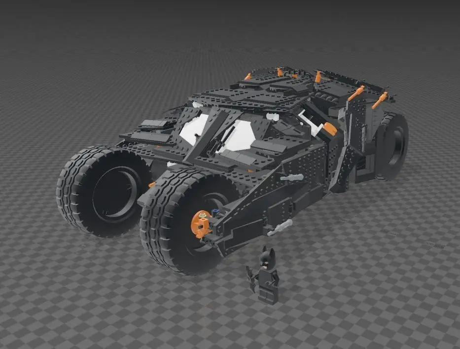 A fully digitalized model from the famous brick producer, the Lego Batmobile Tumbler (2nd edition) 76240 (2020). Every single piece is a distinct object, even the minifigure.