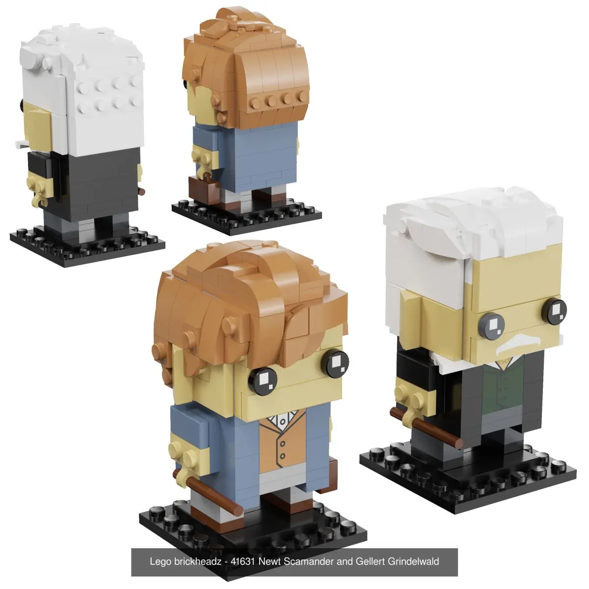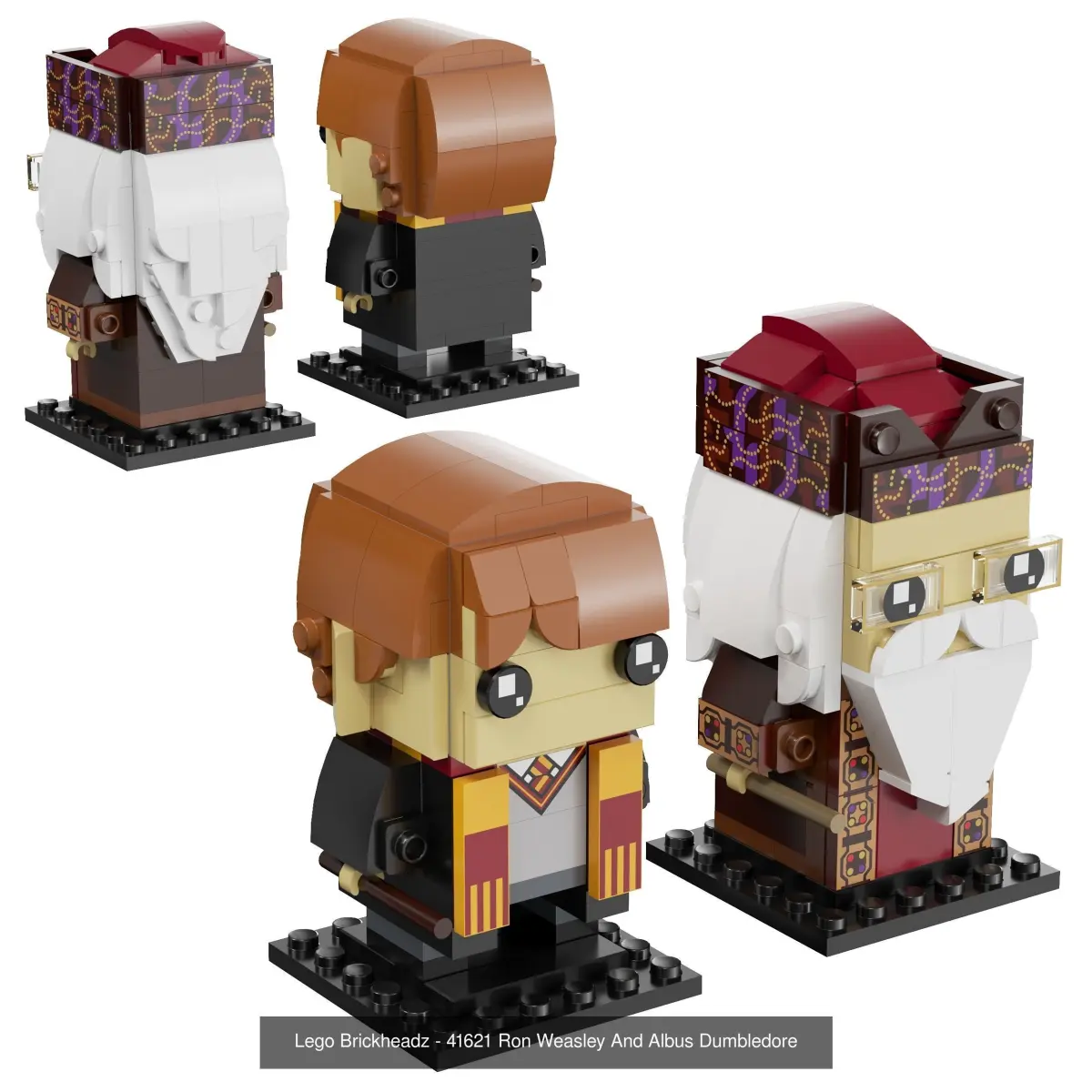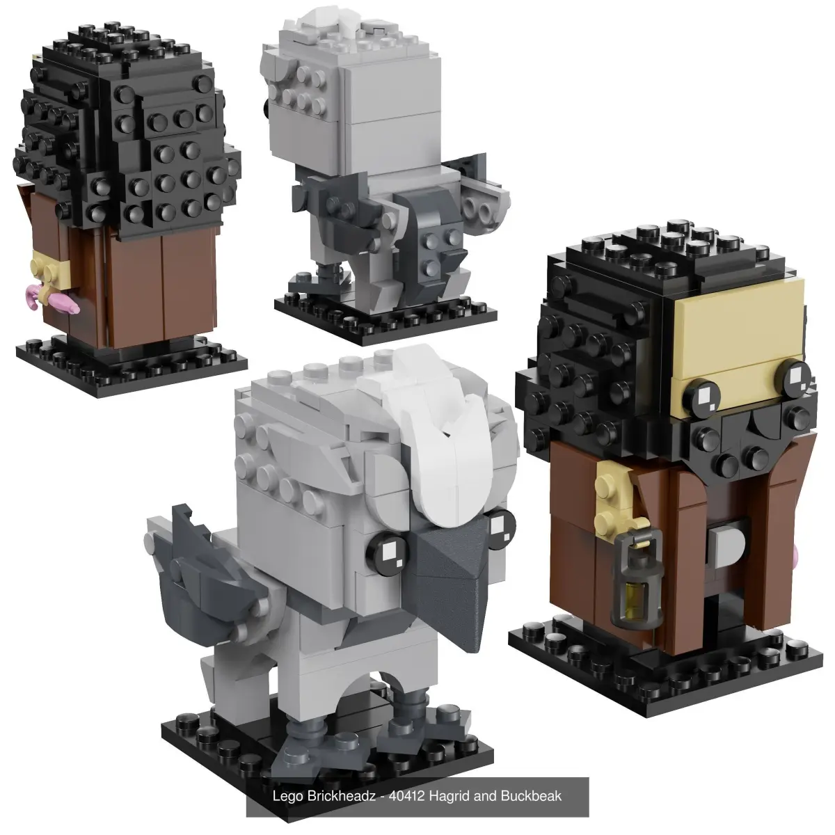 This collectible LEGO BrickHeadz set included 41615: Harry Potter & Hedwig,41621: Ron Weasley & Albus Dumbledore,41616: Hermione Granger,41631: Newt Scamander & Gellert Grindelwald and 40412: Hagrid & Buckbeak.