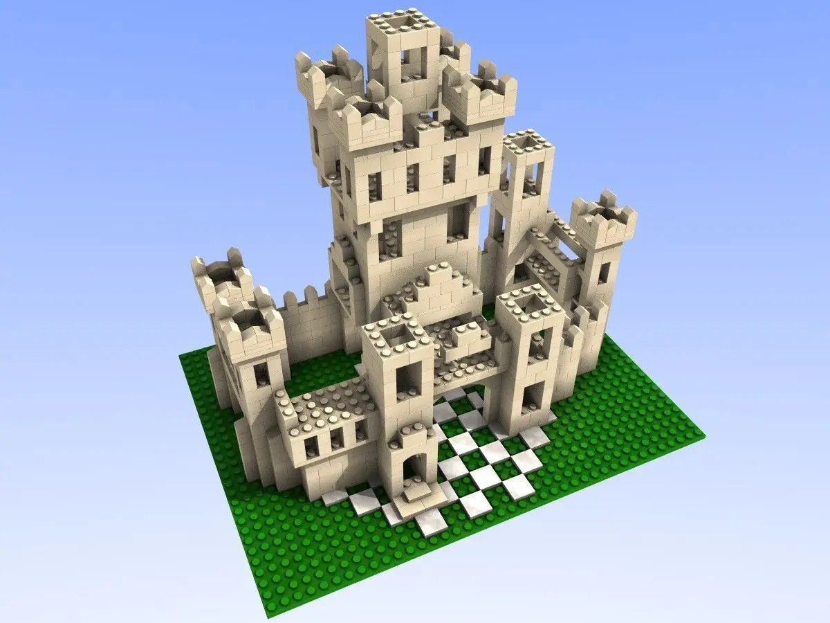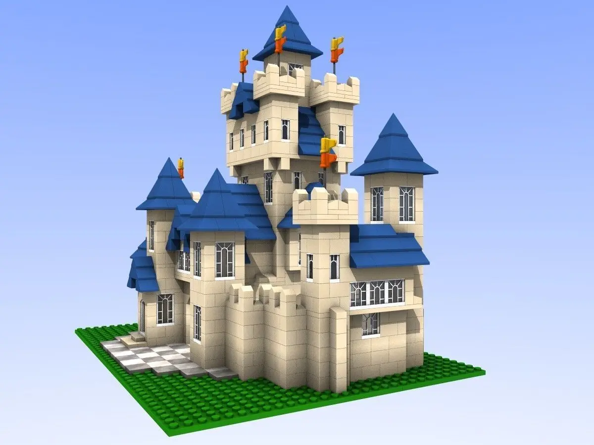 Great building toy castle with individual parts modelled and built 'stone by stone' for a easy modification, animation, etc. Well finished construction with all elements like towers, roofs, arches, floor tiling, windows, in the front and in the back. All sides, inner patios too.