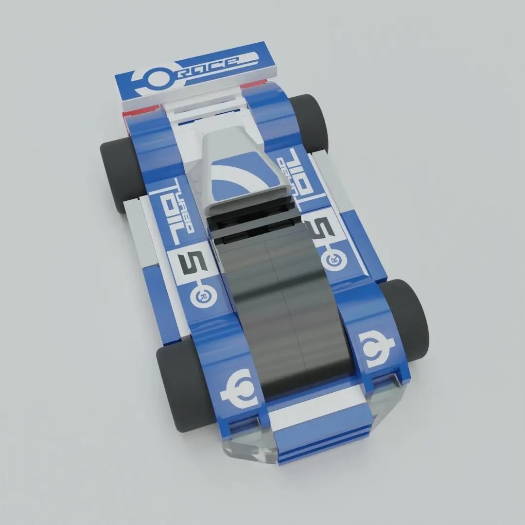 Detailed 3D model of Lego Racers toy car. Every brick is modeled separately then assembled into one object, but still can be reassembled.Stickers are on separated objects and have own material ant texture file.