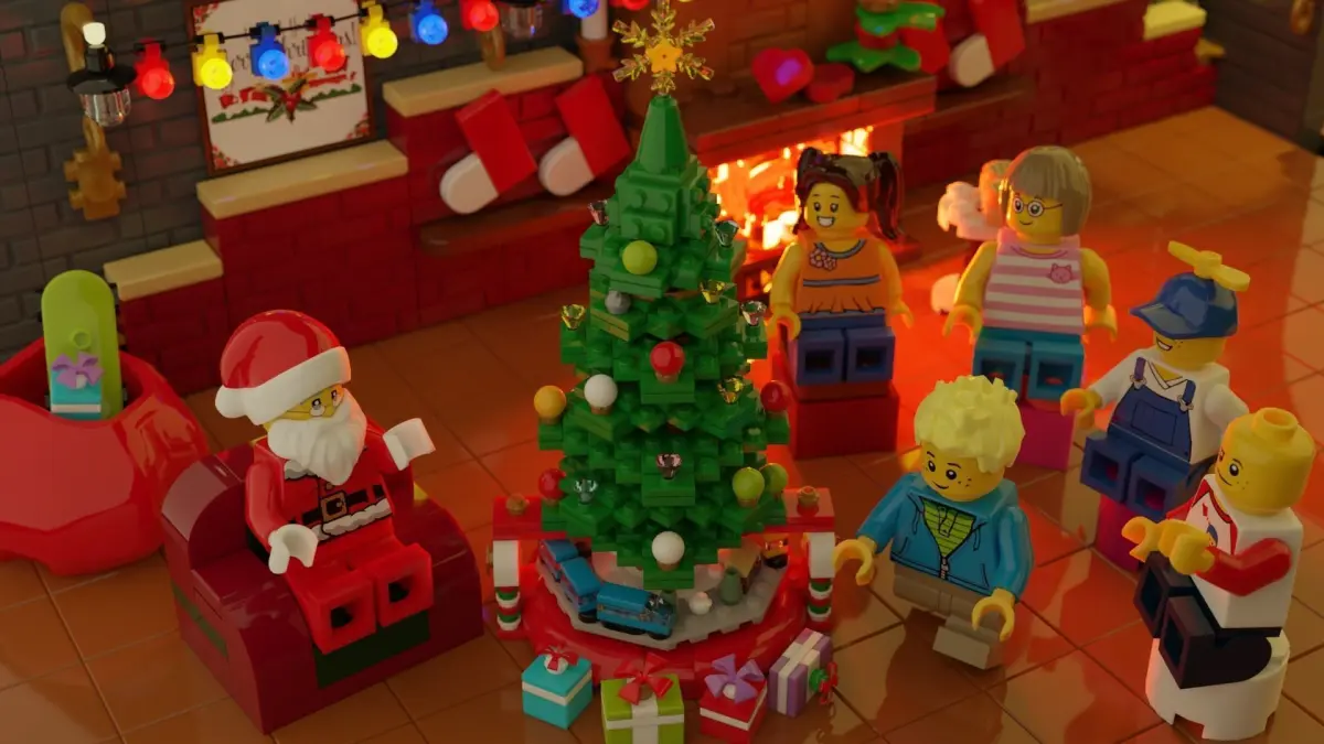Lego Santa with gifts ,kids,christmas tree and new year interioir