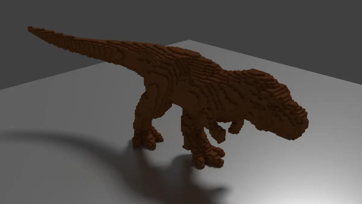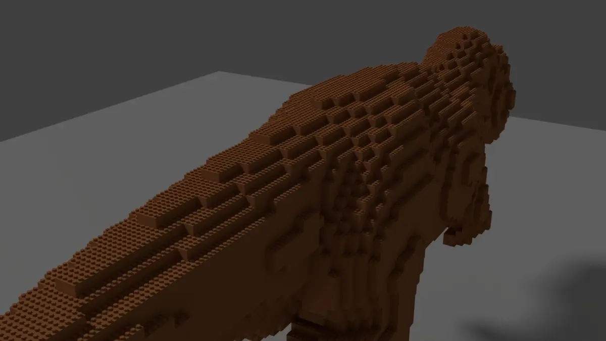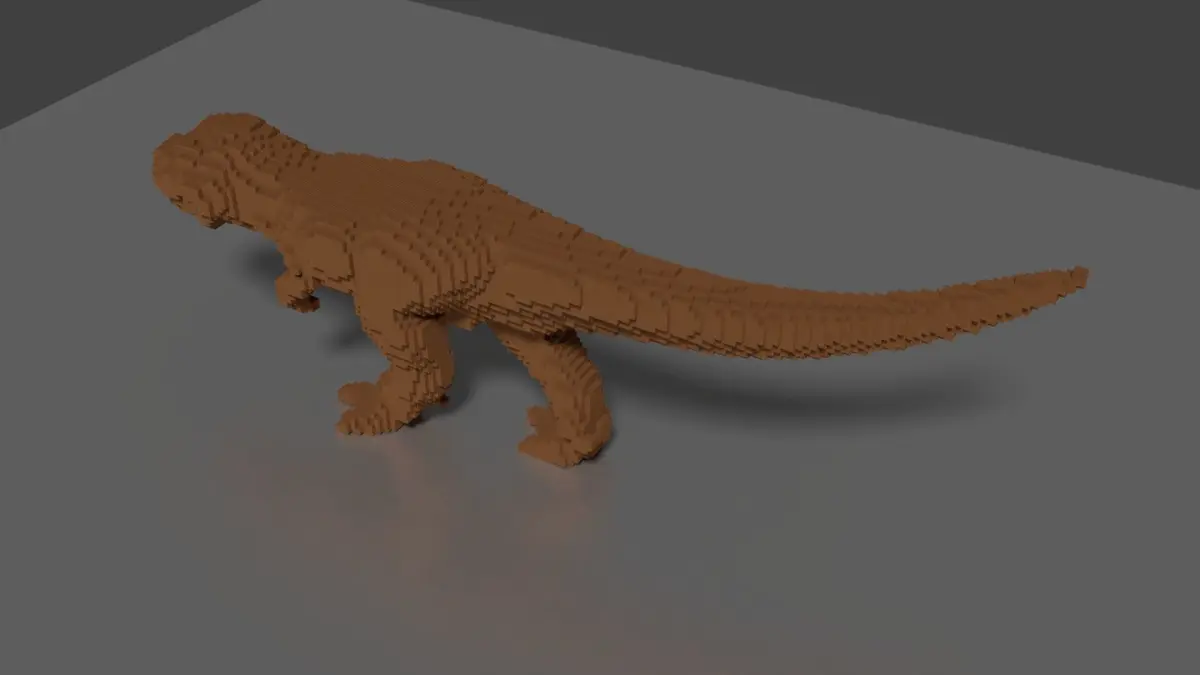 A T-rex model made up of lego pieces. Model has no material but you can apply different materials to each lego piece if you want to.