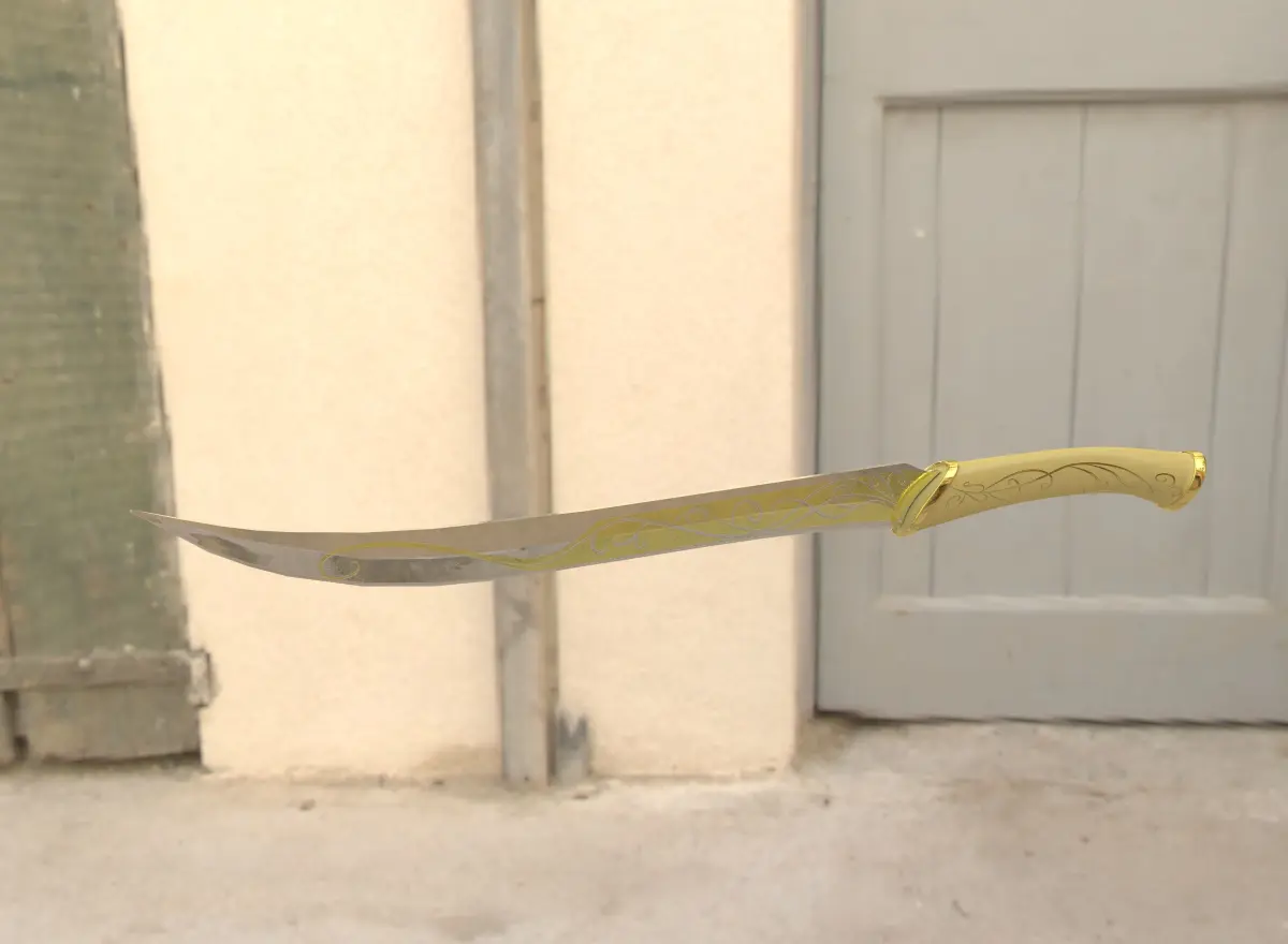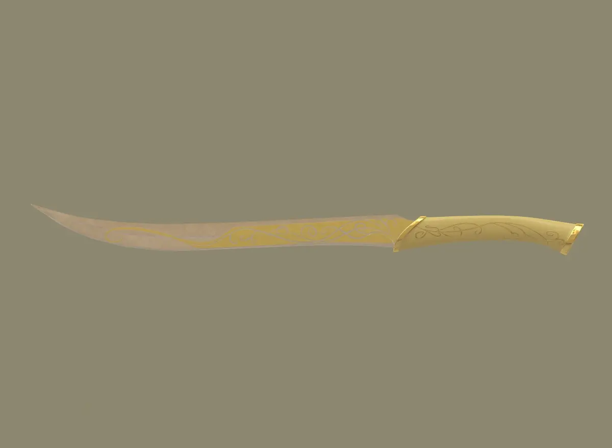 Elf dagger with gold pattern from the universe Lord of the rings (LOTR). Render with V-Ray. PRB textures with UVW mapping. High quality PBR textures (4096x4096).