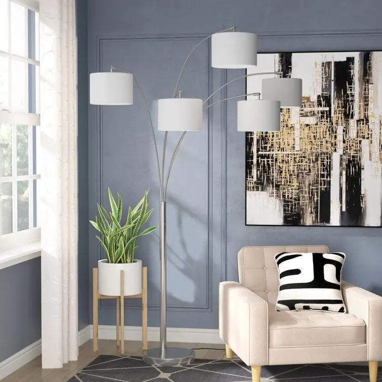 - This is the best-equipped floor lamp to brighten up any living space in your home or office. With 5-arched Modern design, allow having a prominent presence in any setting. Corrigan Studio new LED dimming system and multi-directional function in each arch reach any dark corner of your living space with ease.