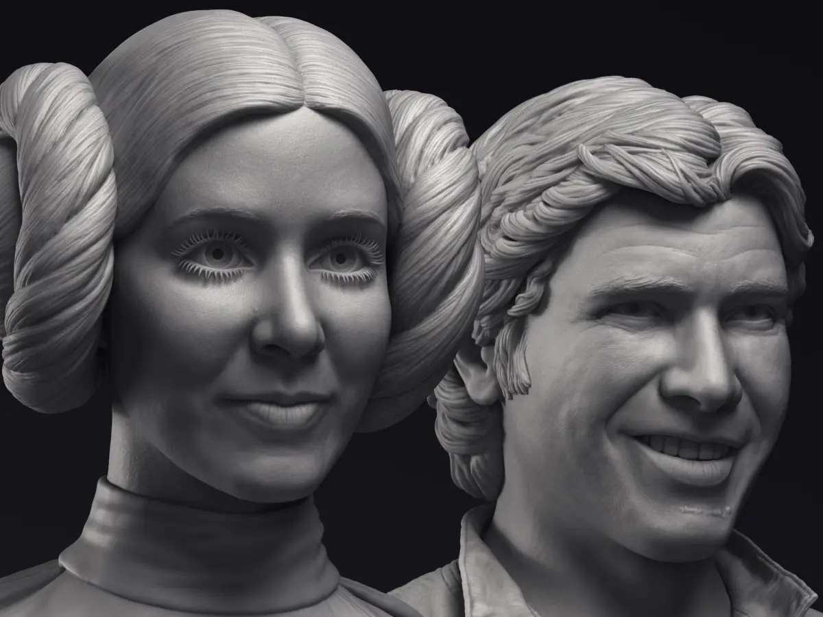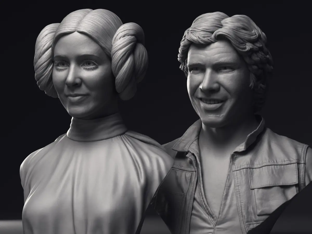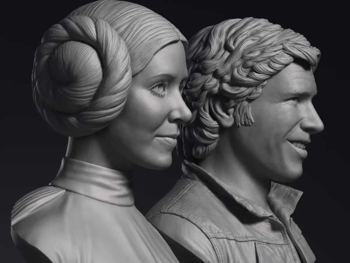 Collection including two diferent highly detailed 3D printable busts of Leia and Han Solo: