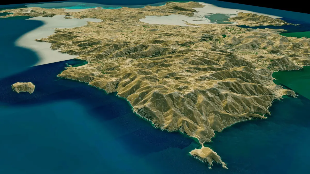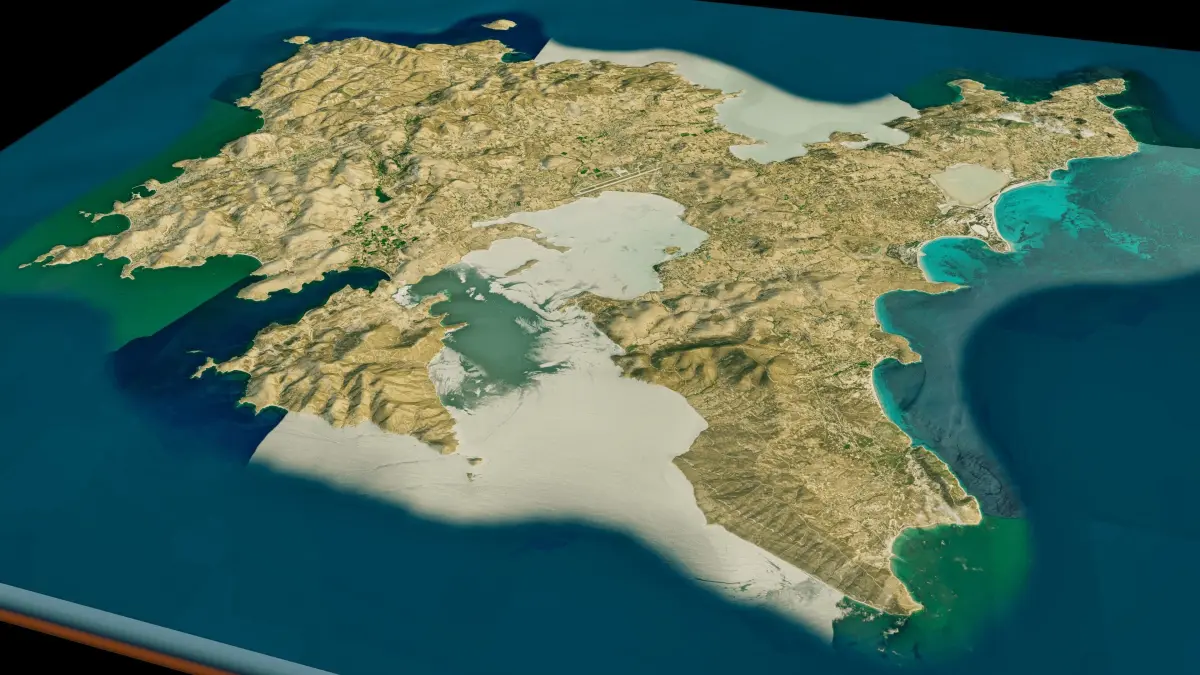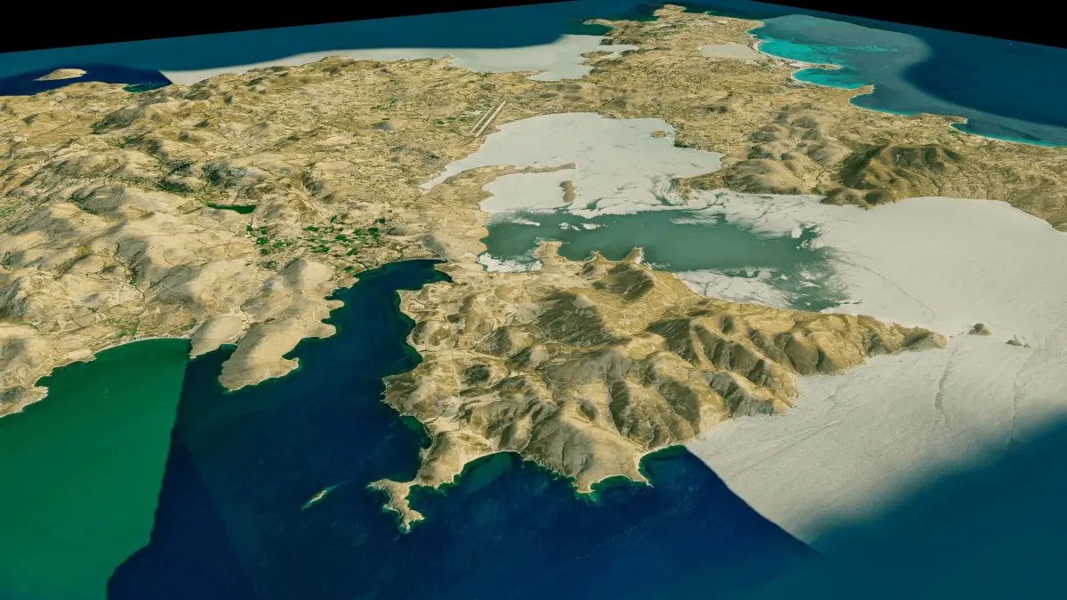 3d model landscape of Lemnos Island, North Aegean, northern Aegean Sea, Grecce.