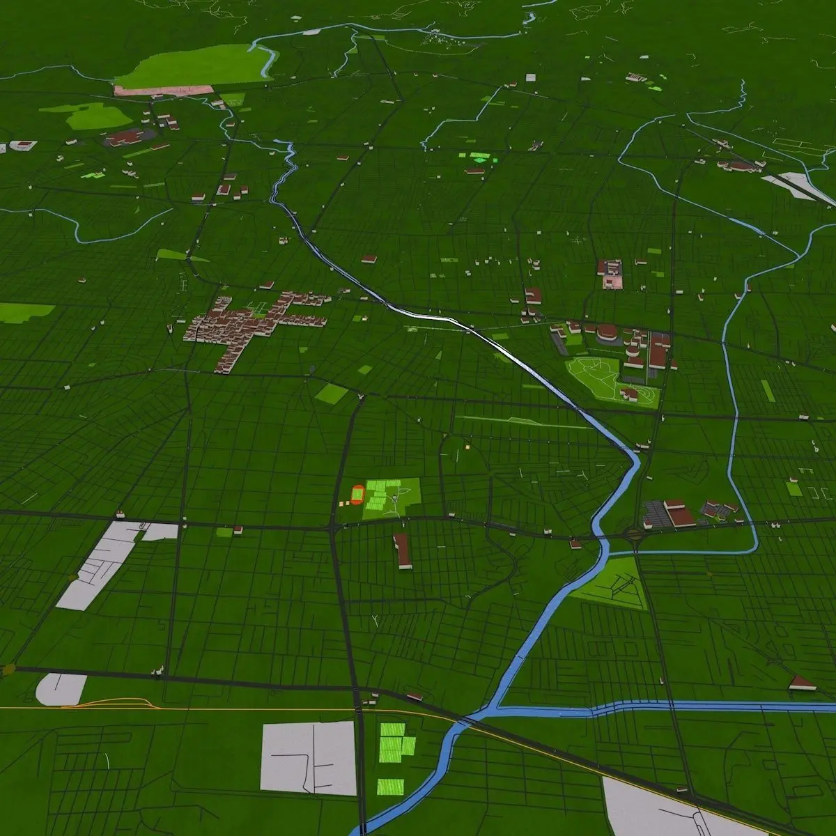 You can easily hide any layer/groups for better visualization. Due to small size and minimum details this scene can be easily loaded. Materials can easily be changed and altered. Adding texture is easy, thanks to unique materials for each sections. Map data : OpenStreetMap contributors