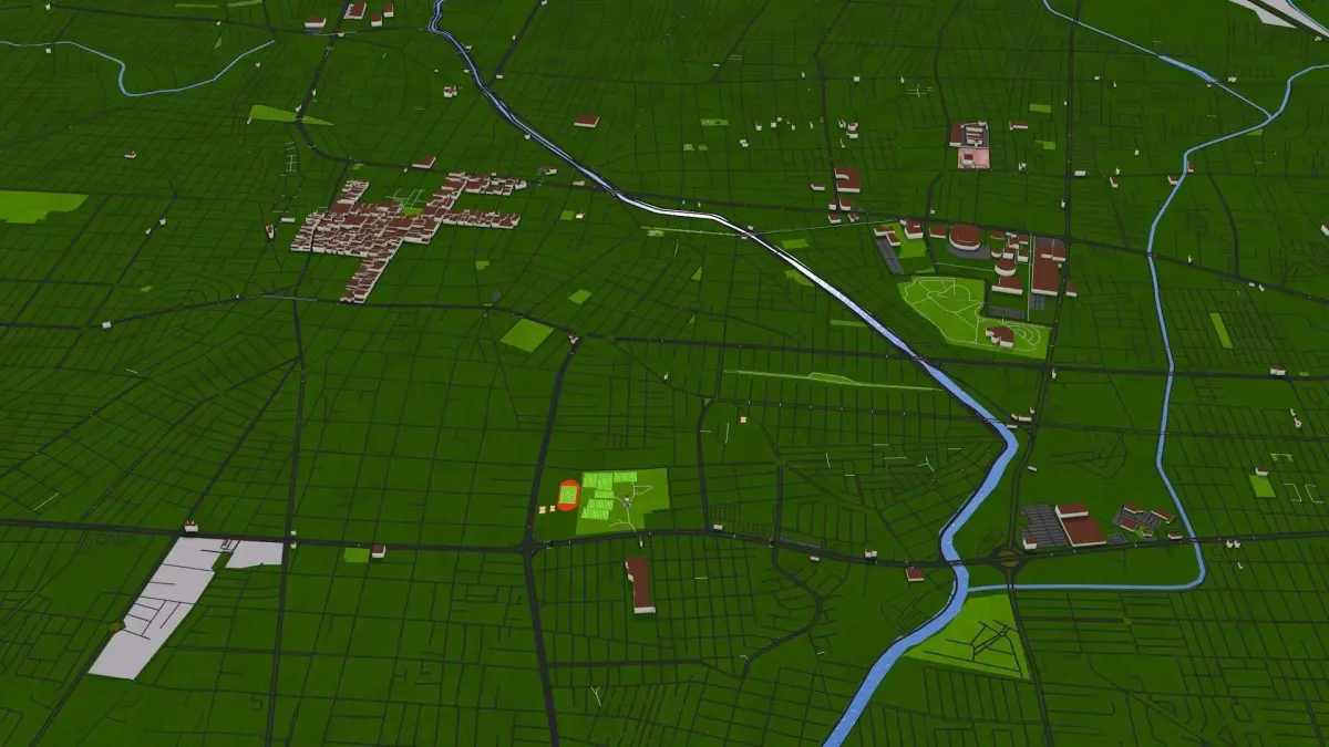 Clean heirarchy- Proper grouping according to the type of real world objects. Properly named objects and materials. Buildings are extracted from real world data. There are random buildings added to some areas where real world data is partially available (missing height details). Curve data included in separate file.
