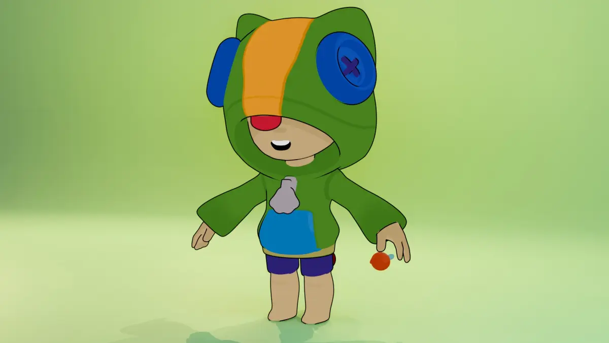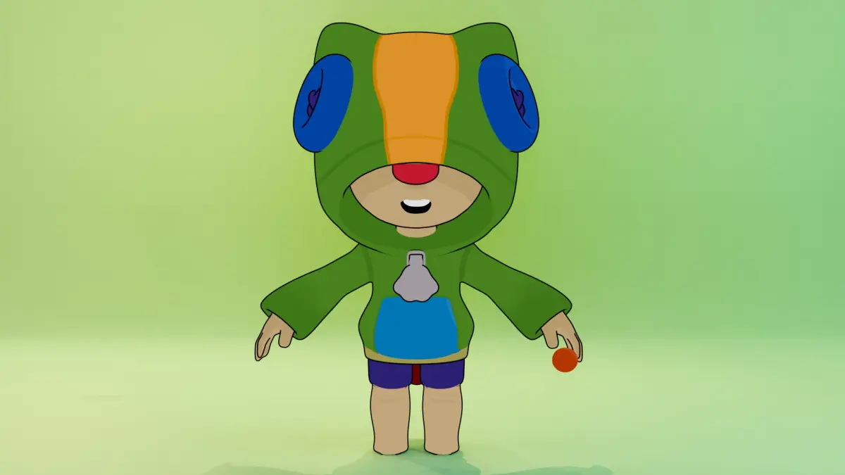 The image shows a 3D model of the character in cartoon style. Features: