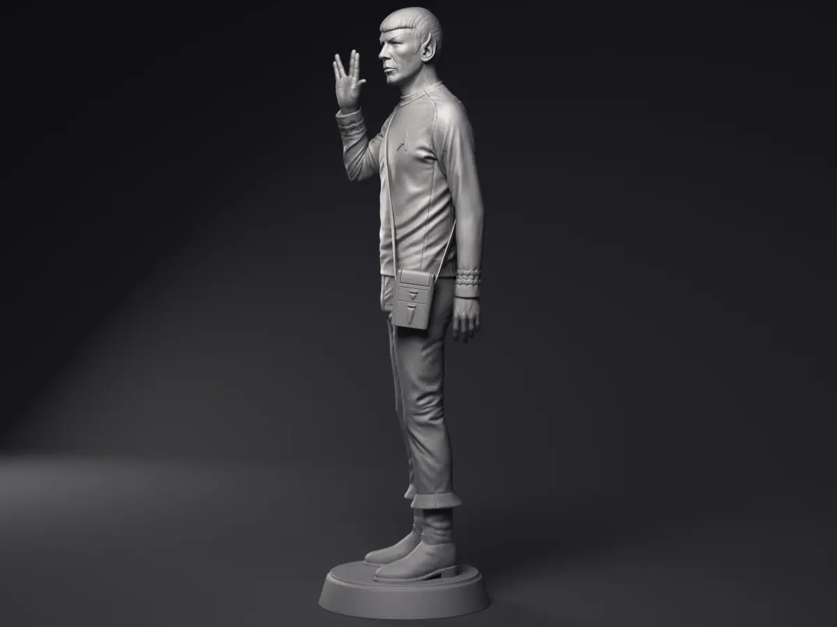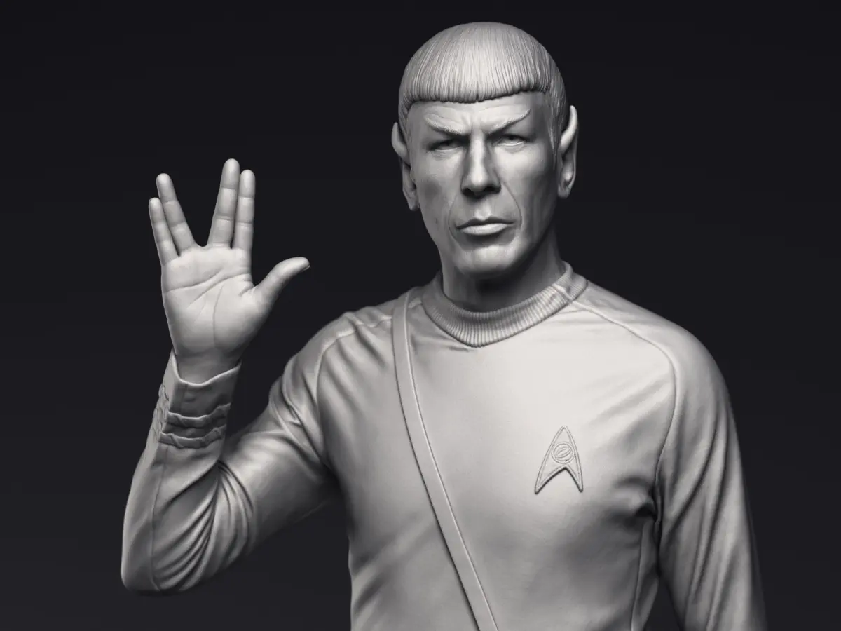 Highly detailed 3d printable sculpture of Leonard Nimoy as Mr Spock, First Officer of NCC-1701 USS Enterprise ship from Star Trek The Original Series.