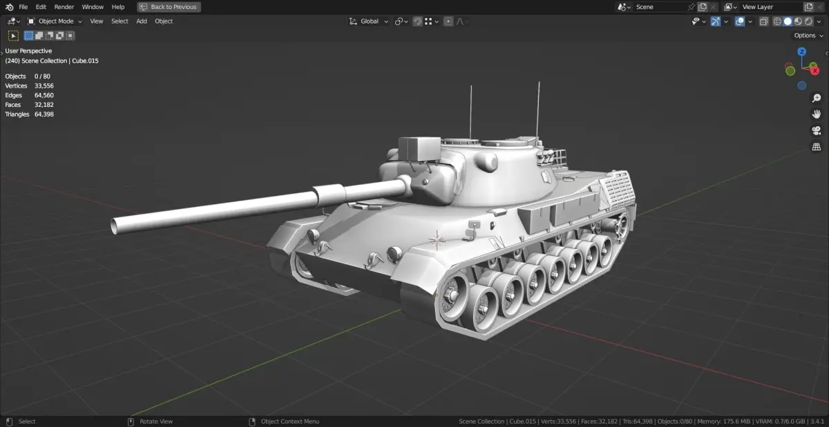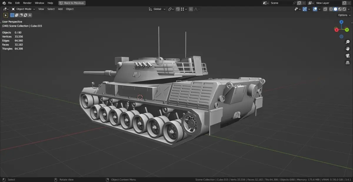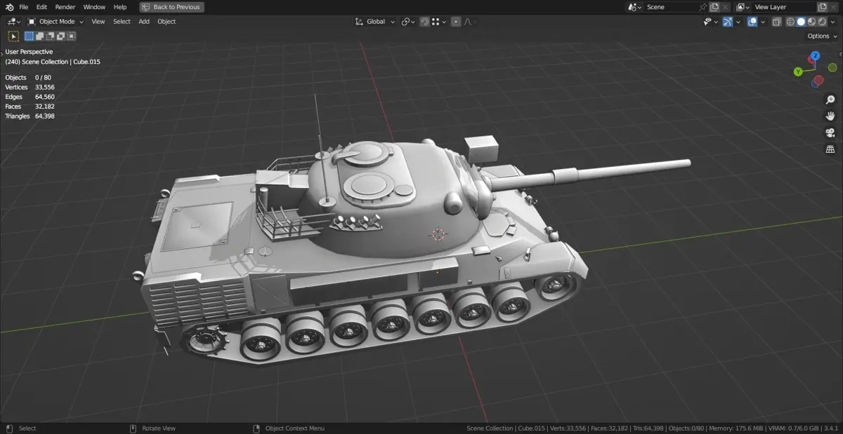Model is made in Blender 3.4. It is a base mesh model. Made to scale, Blender units. Part of a larger collection of base mesh tanks.