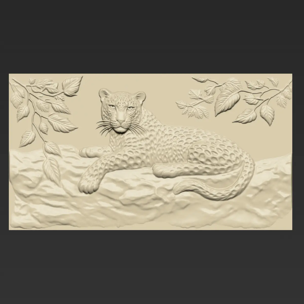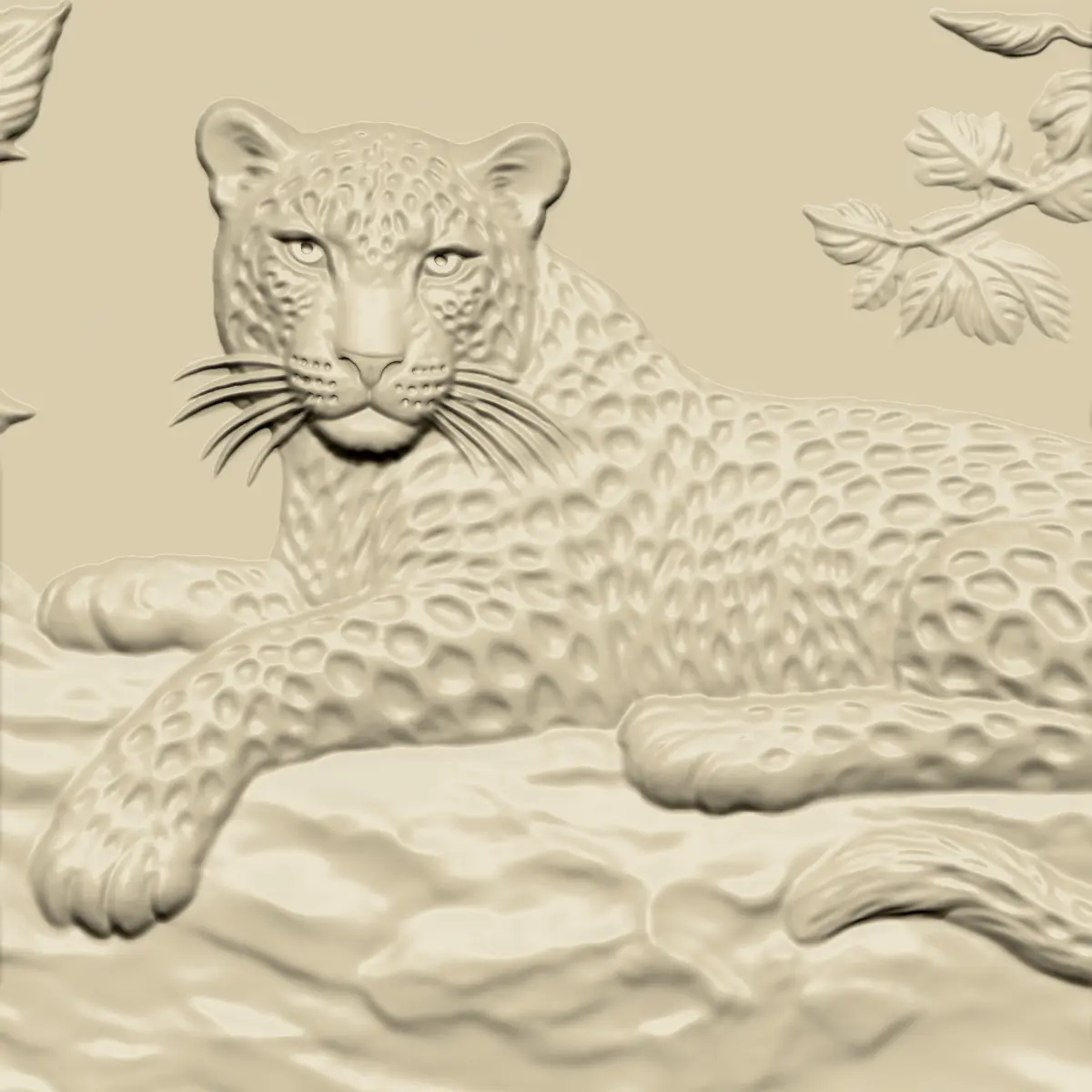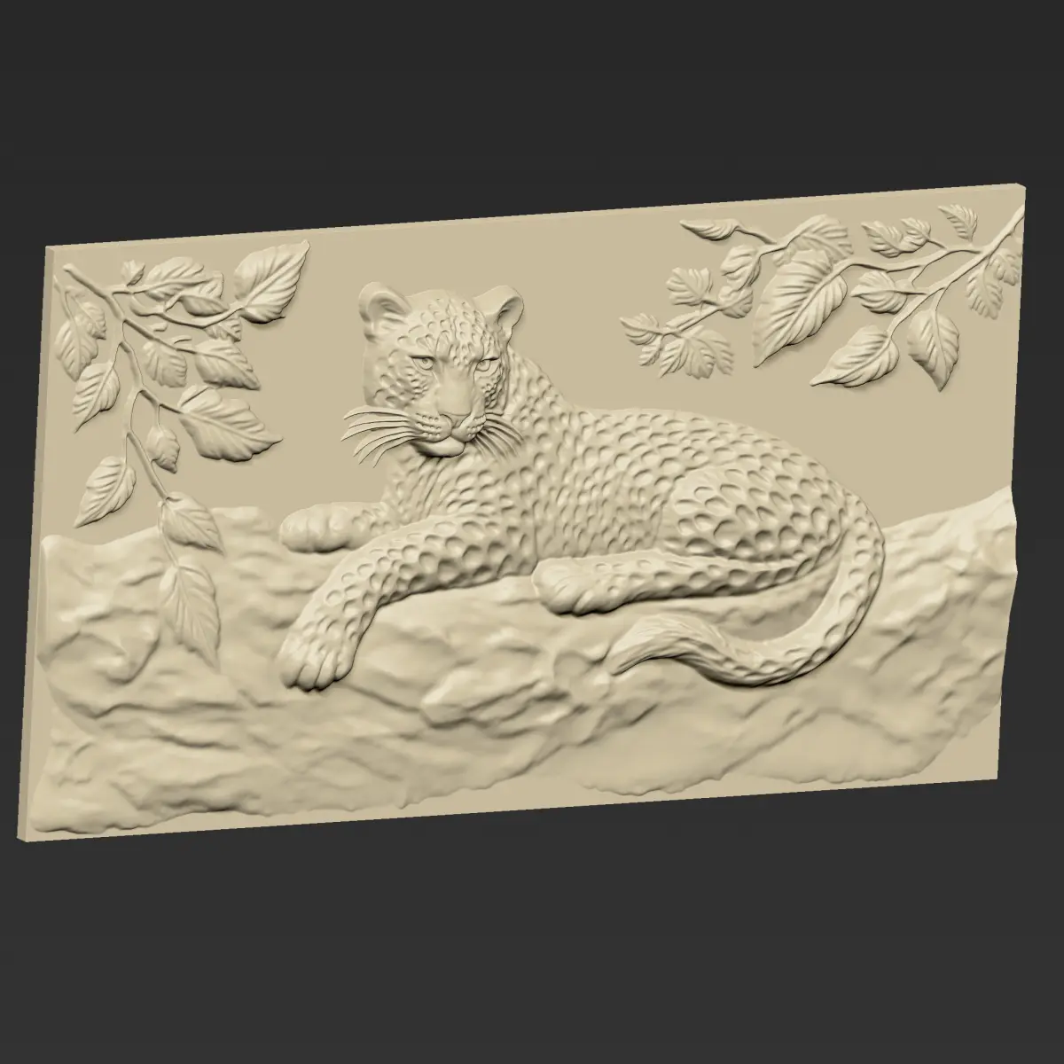 3d model of bas-relief of a leopard lying on a rock ready for CNC Router Carving or 3d printer.OBJ,STL format.Note:All the models are not for resale,it is illegal!