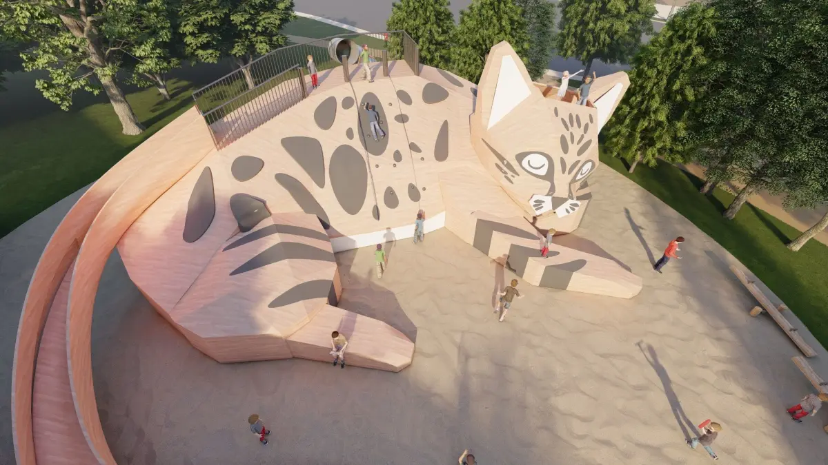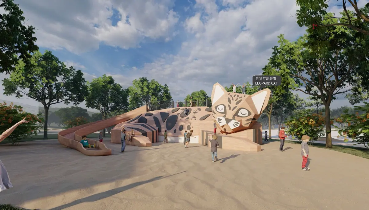 The structure includes climbing sections, tunnels, and interactive elements that promote physical activity and imaginative play. The leopard cat's spots are creatively integrated into the design, adding a whimsical touch that sparks curiosity. Durable materials ensure longevity, while the smooth edges prioritize safety for young adventurers.