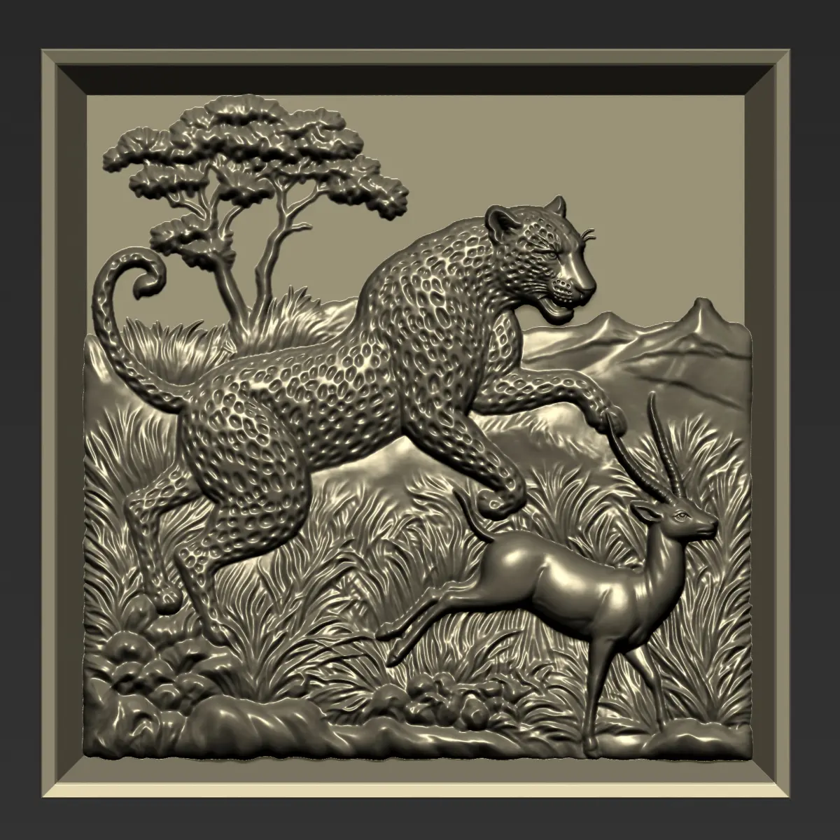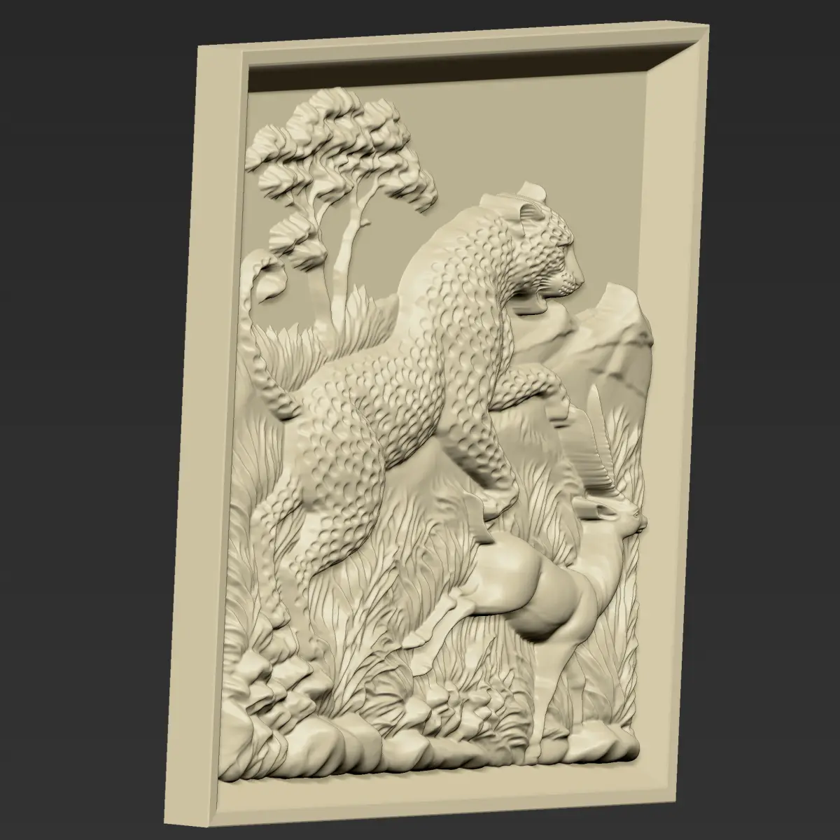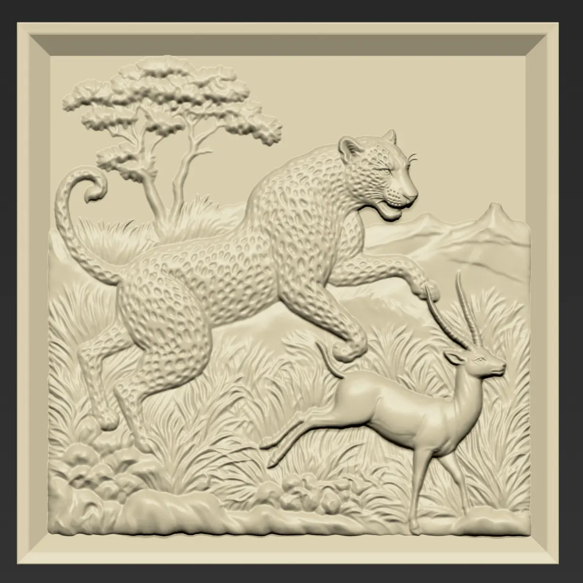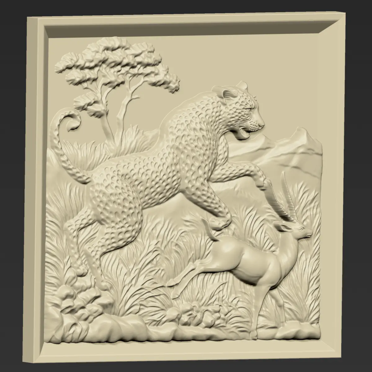 3d model of bas-relief of a leopard hunting antelope ready for CNC Router Carving or 3d printer.OBJ,STL format.Note:All the models are not for resale,it is illegal!