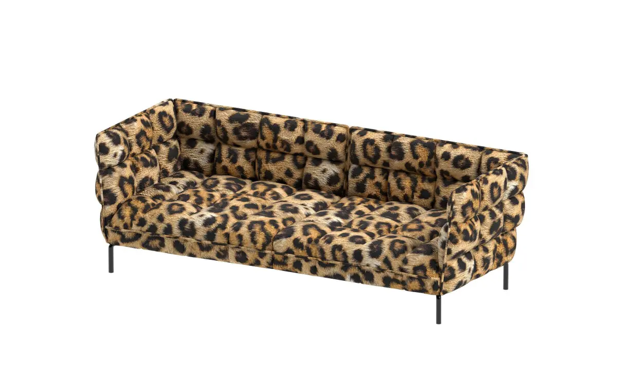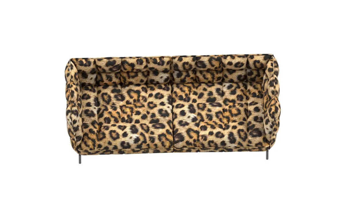 This high-quality 3D model features a stylish and bold tufted sofa upholstered in a realistic leopard print fabric. Designed with modern aesthetics in mind, the model includes accurate detailing of the cushion tufting, elegant piping, and slender metallic legs, making it ideal for contemporary interior design visualizations, luxury furniture presentations, and fashion-themed renders.